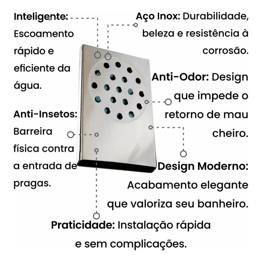 Ralo Pratic Box Preto Inteligente 14x10cm Para Box Banheiro Escoramento Aço Inox Anti-Entupimento.