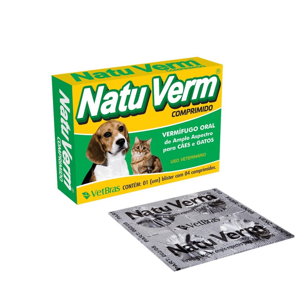 Vermífugo Para Cães e Gatos Remedio de Vermes Natu Verm Vetbras 4 Comprimidos