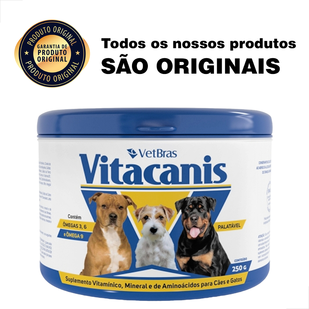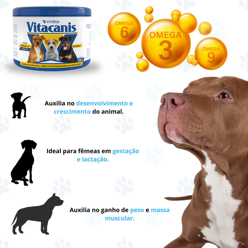 Suplemento Vitamínico para Cães Vitacanis 250g ideal para animal filhote e idoso