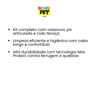 Kit Limpeza Pesada Completo Rodo Vassoura Pá Com Cabo Noviça