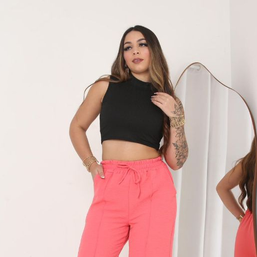PANTACOURT Feminino Calça Com Bolso Tecido Duna Canela Verão