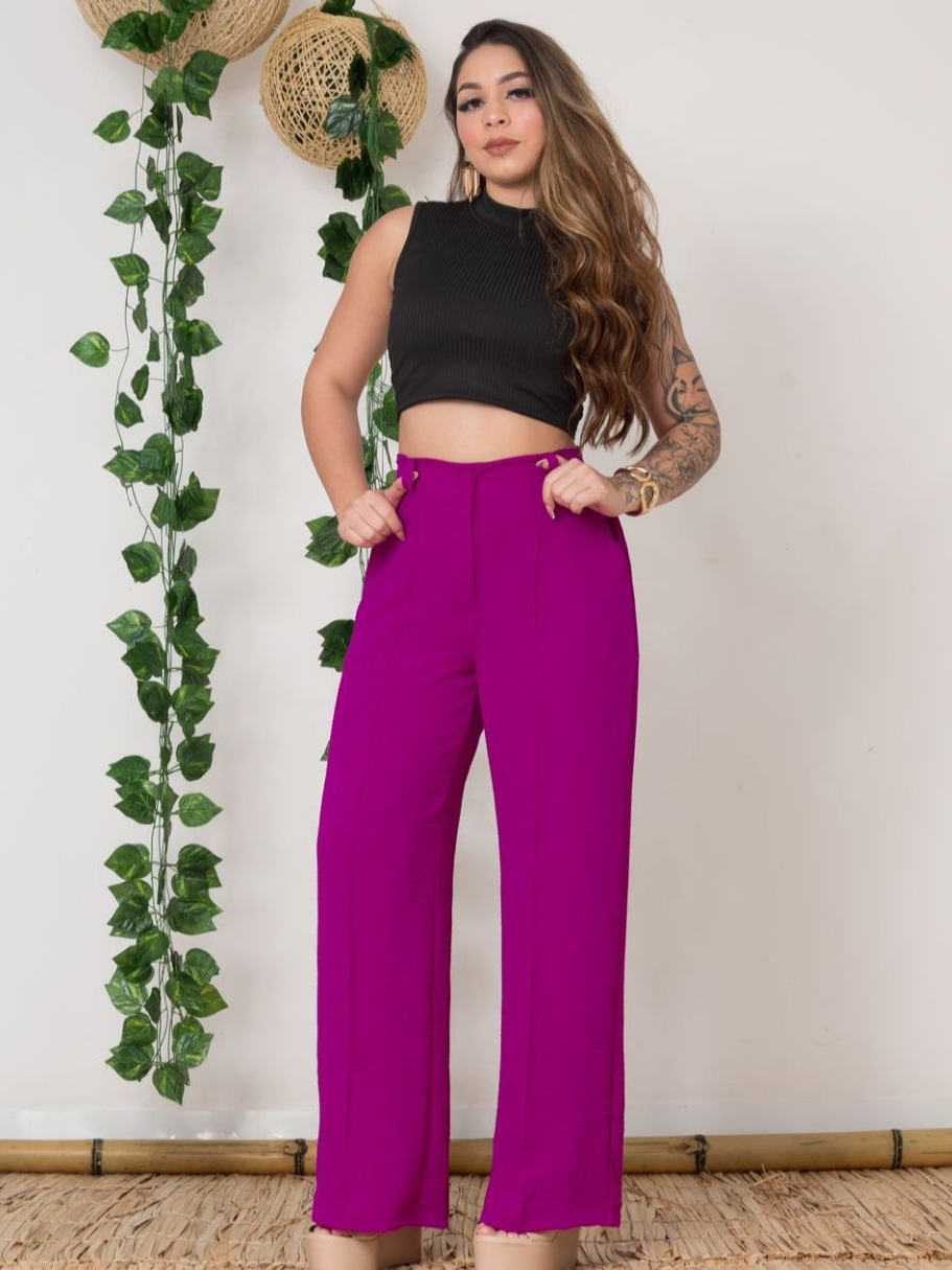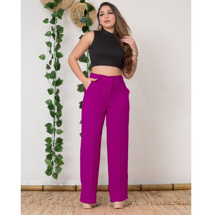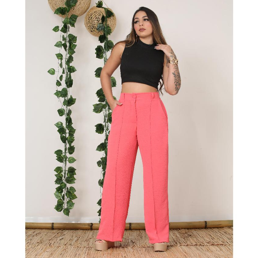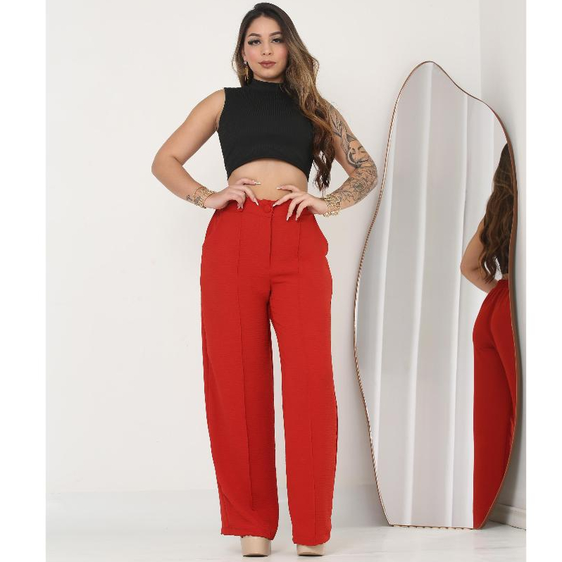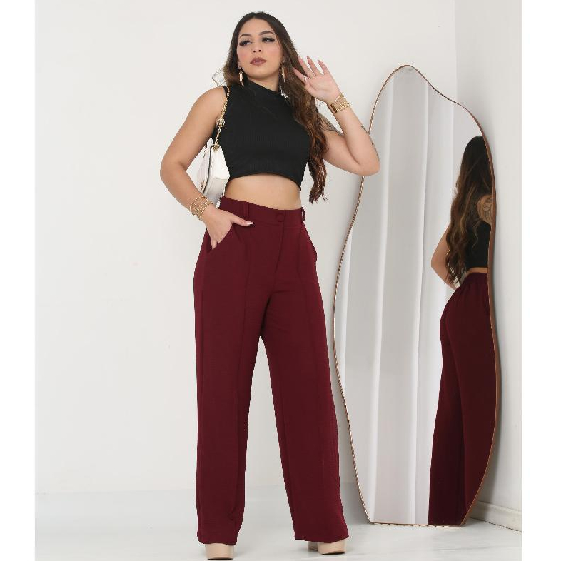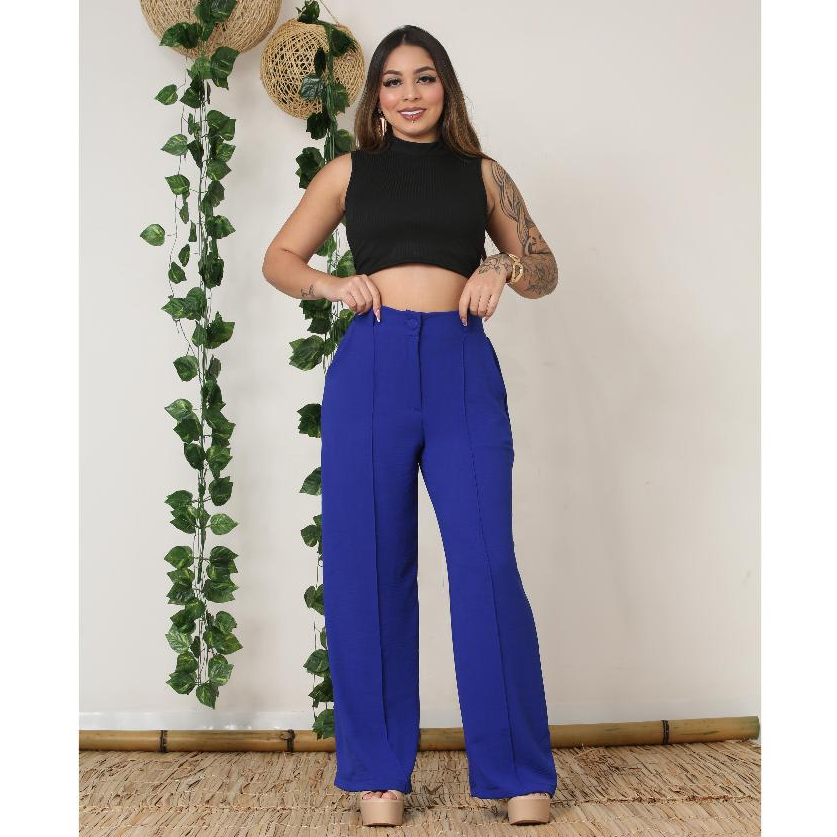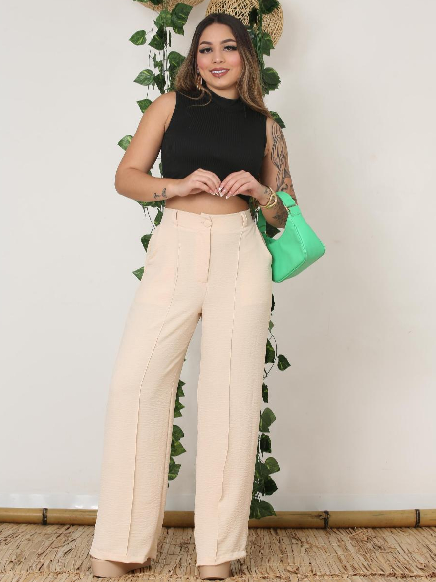Calça Feminina Pantalona Duna Elástico na Cintura Wide Leg Tem Ziper