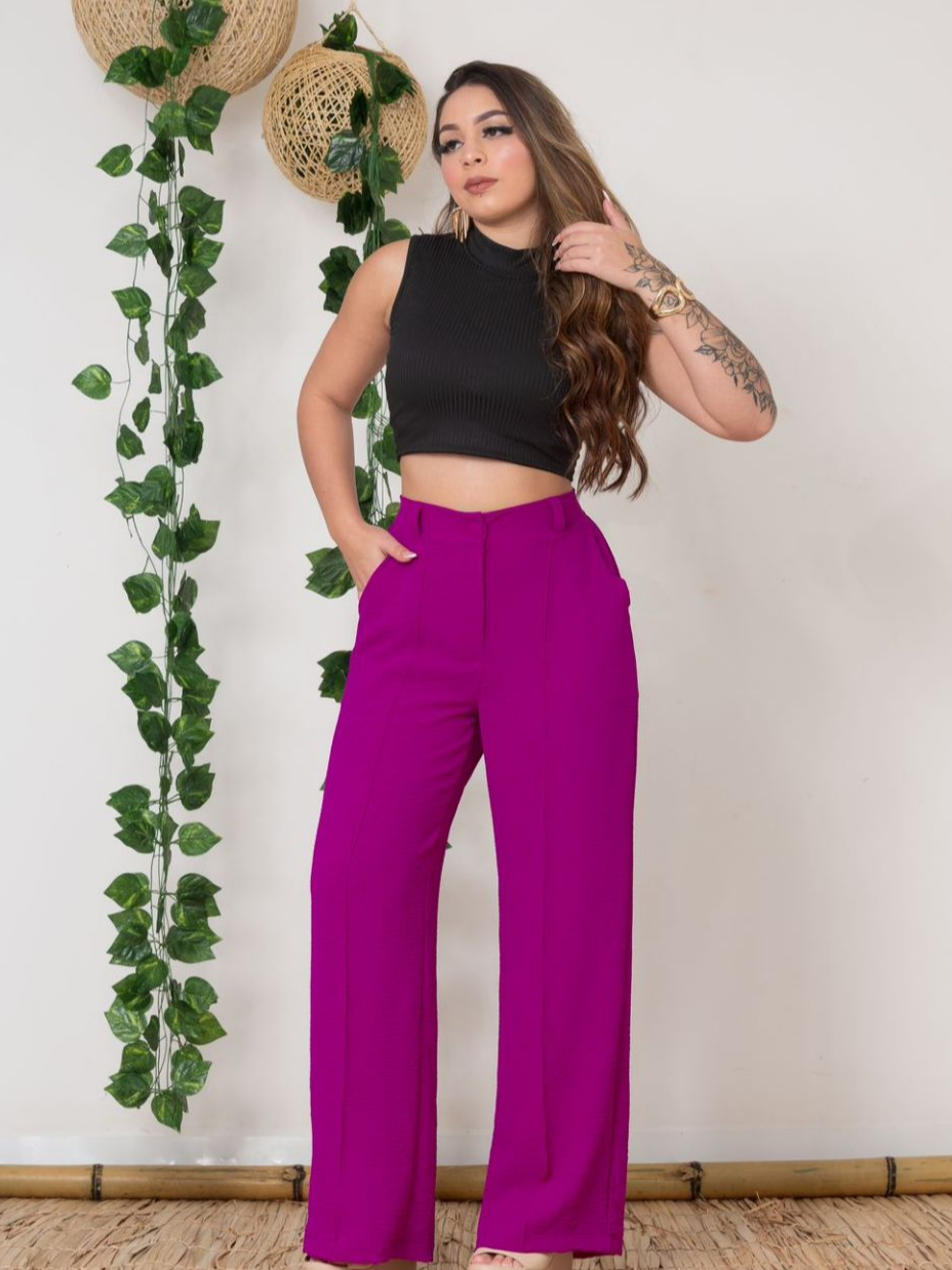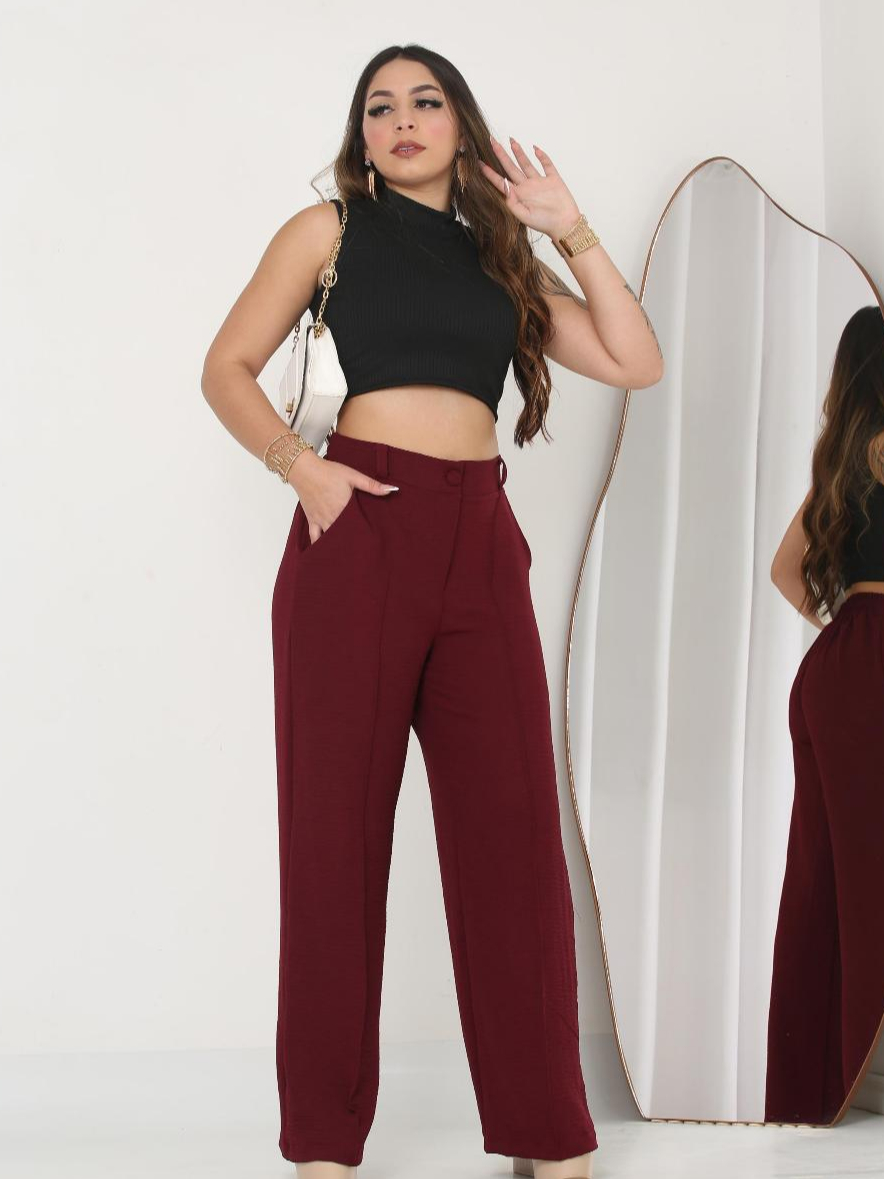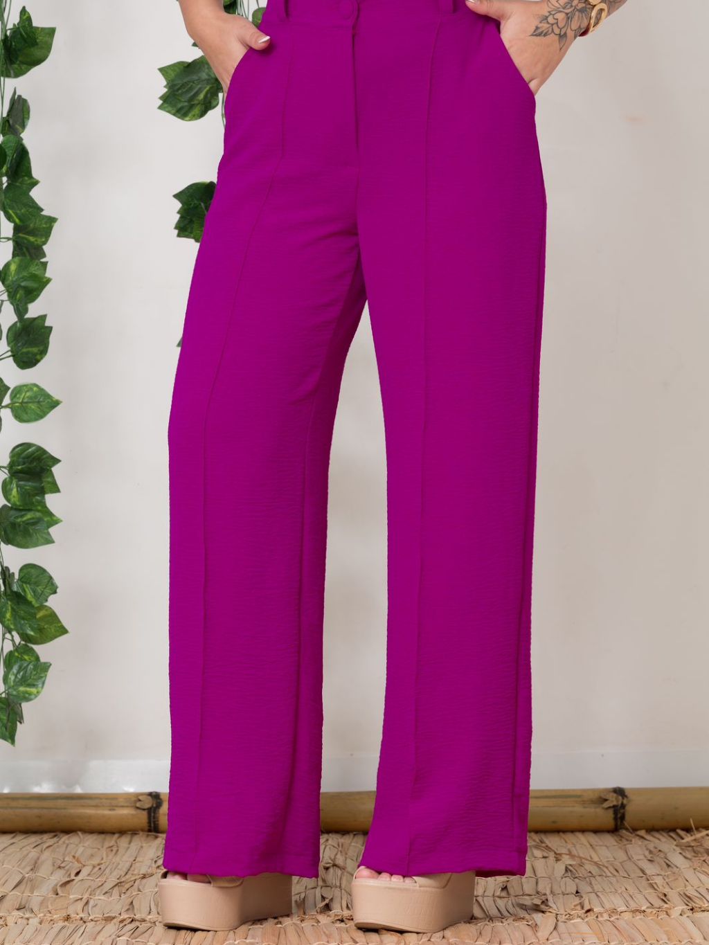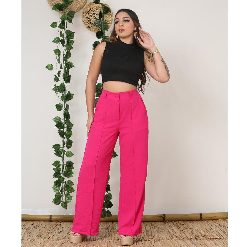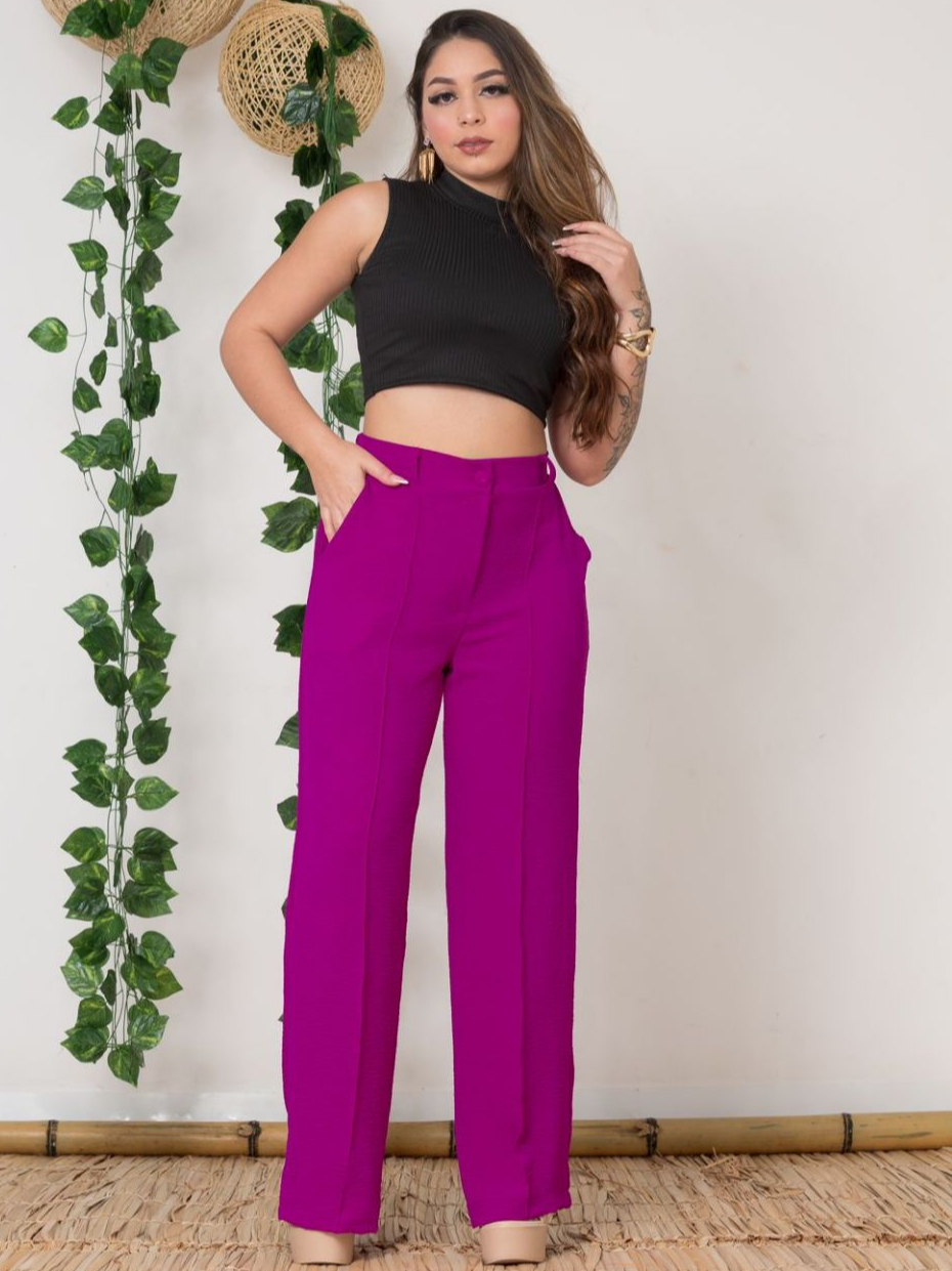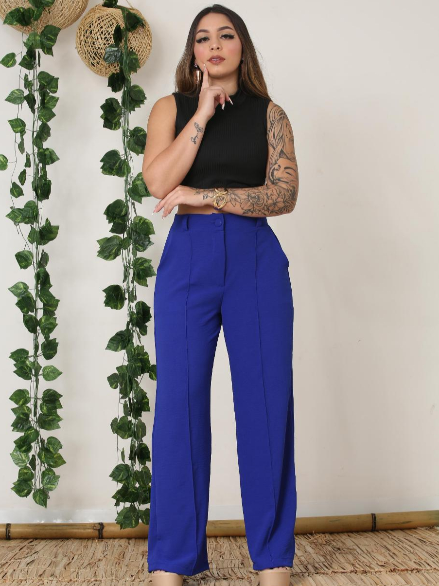 Calça Feminina Pantalona Duna Elástico na Cintura Wide Leg Tem Ziper