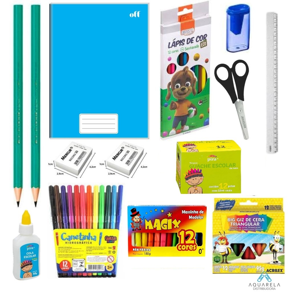 KIT MATERIAL ESCOLAR BASICO 12 ITENS