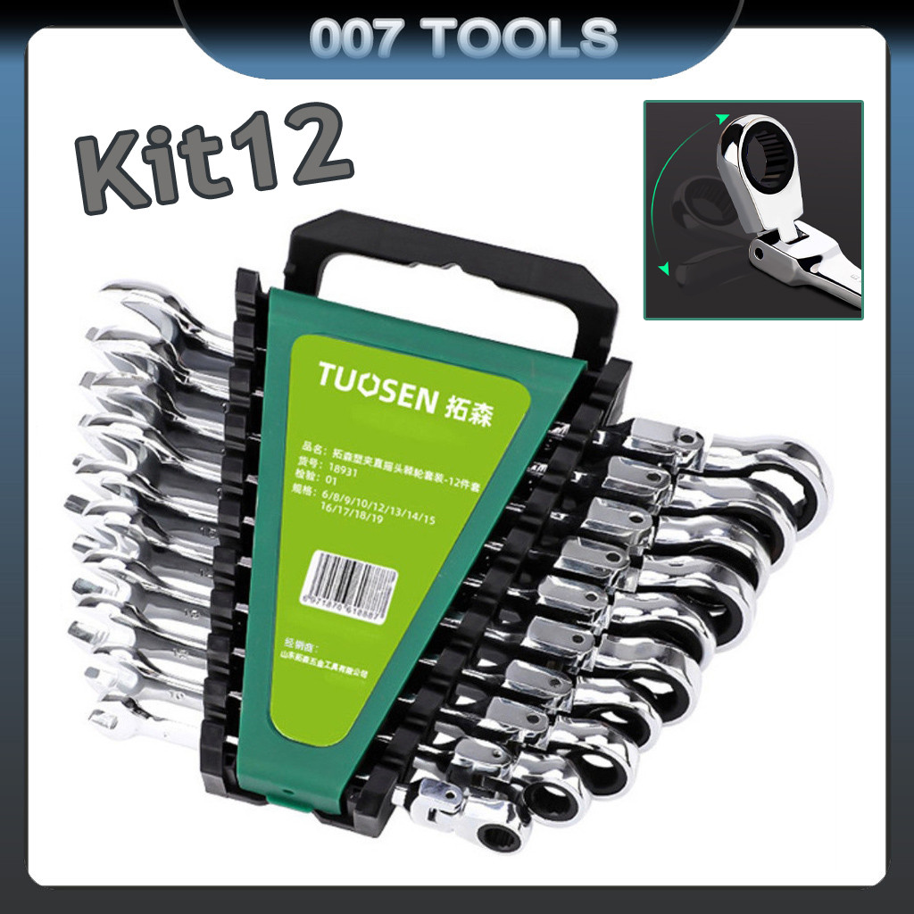 Jogo 12 Chave Cabeça Ajustável Combinadas Com Catraca Estojo