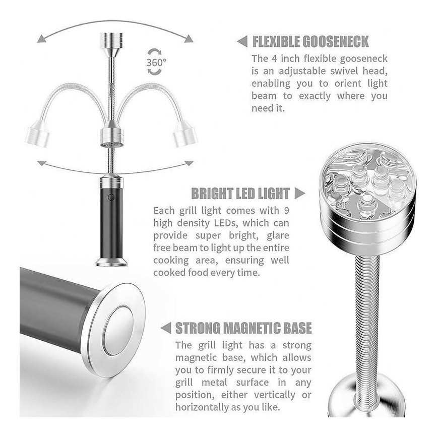 2 Peças Lanterna Magnética Led Pescoço Luz Rotativa Adequada Para Churrasco Acampamento Leitura Manutenção Do Carro