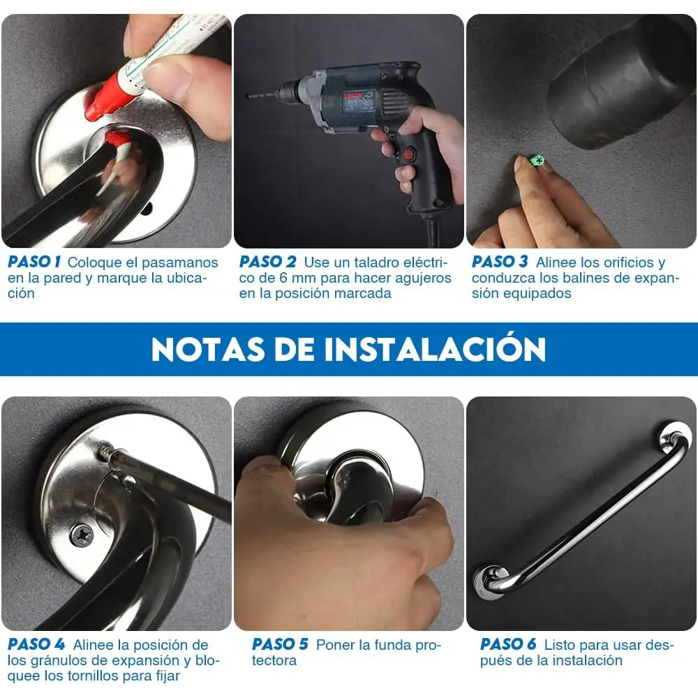 60cm Corrimão de banheiro de segurança em aço inoxidável 304 para deficientes/idosos suporte de corrimão de parede