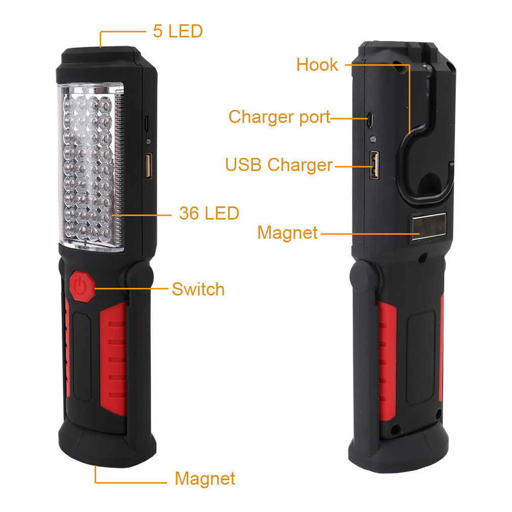 Lanterna De Emergência Magnética 41LED USB Recarregável Luz De Inspeção COB