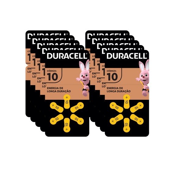 60 Pilhas Auditivas Nº A10 / Pr70 Duracell Com 6 Unidades