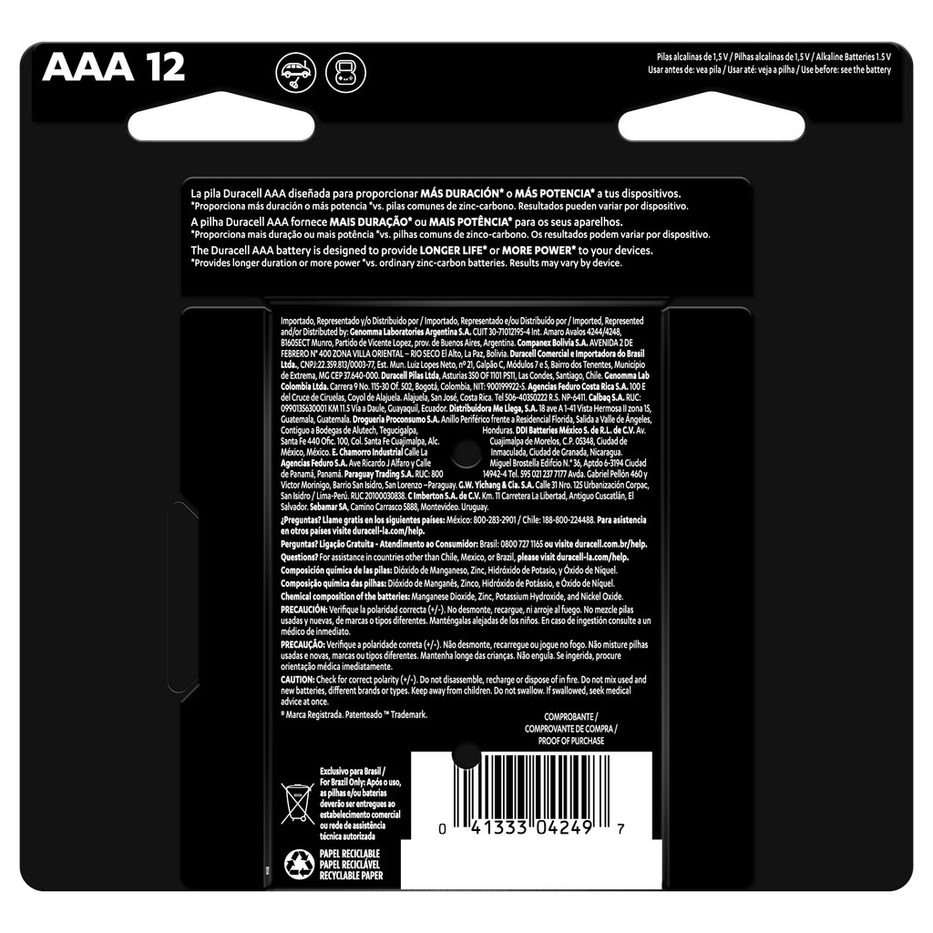 Pilha Optimum AAA Palito Duracell Com 12 Unidades