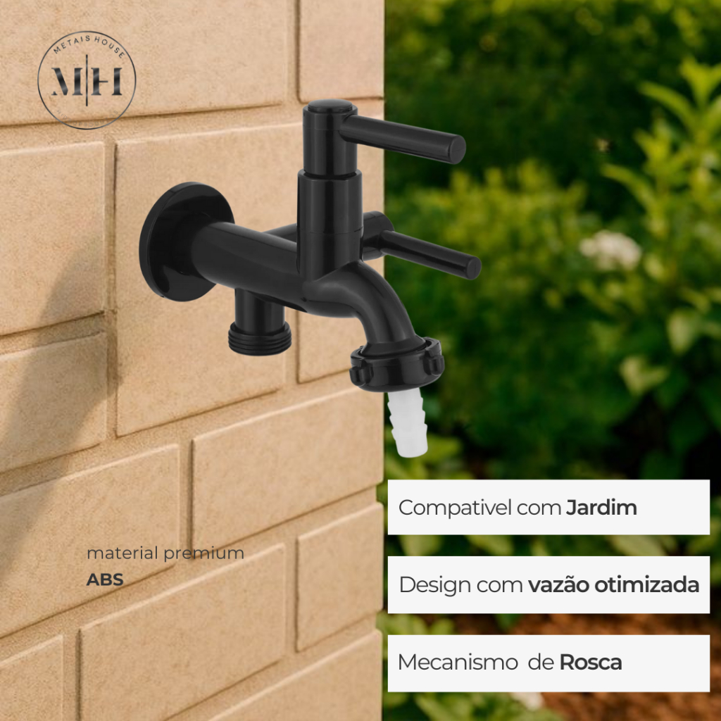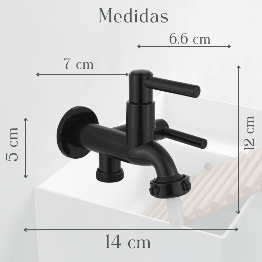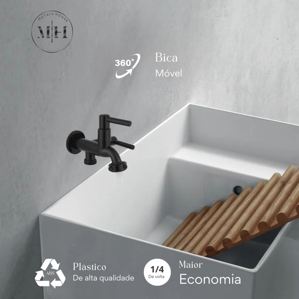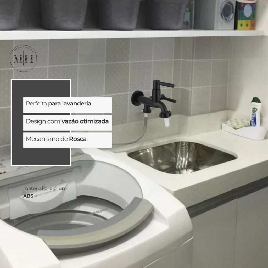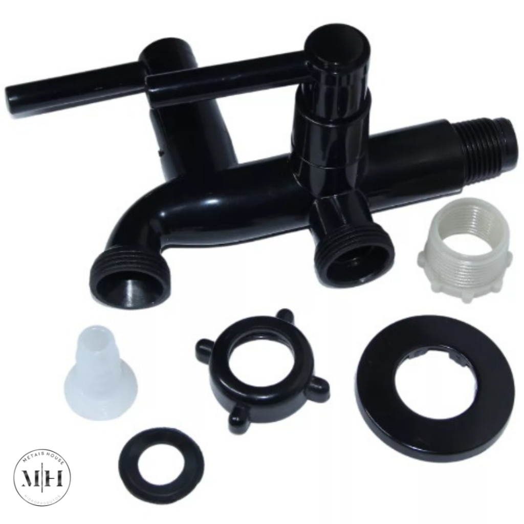 Torneira Preta com 2 com duas saidas de Água para Tanque/ Maquina preta, black 1/4 de volta