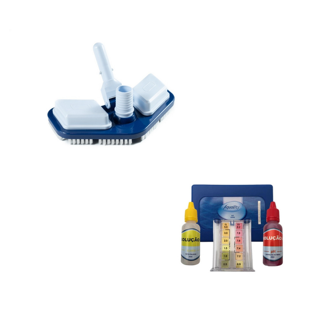 Kit Limpeza Piscina Aspirador Peneira E Kit Teste Ph