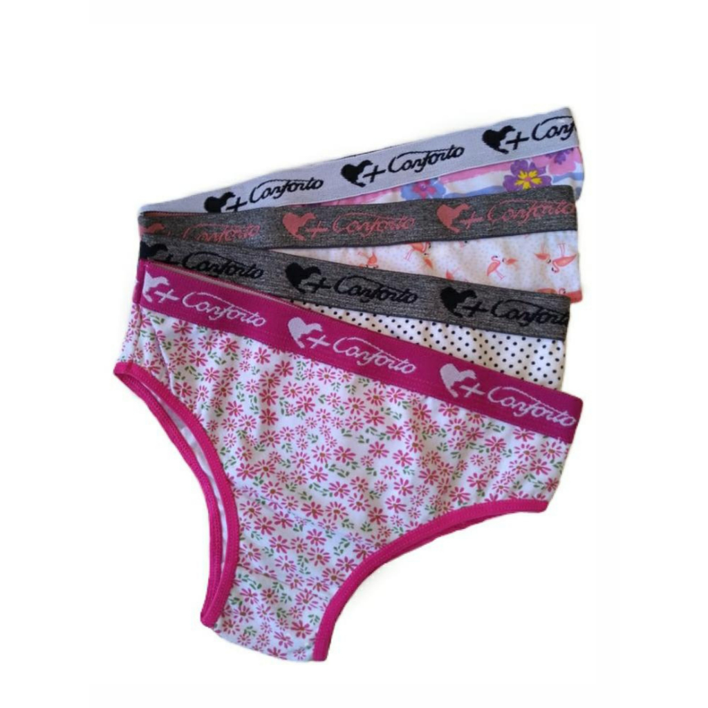 Kit 05 e 10 Calcinha Juvenil / Infantil De Algodão Exposto Forro 100% Algodão C-03