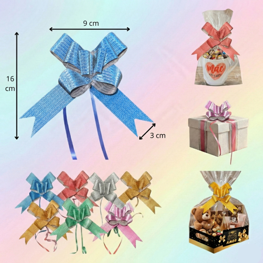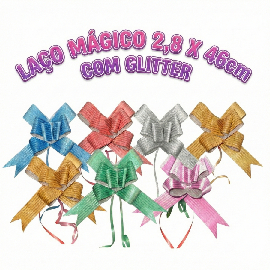 Kit 10 Ou 50 Un Laços Mágicos Grandes Com Glitter 2,6x46 Cm Para Presente Montagem Instantânea