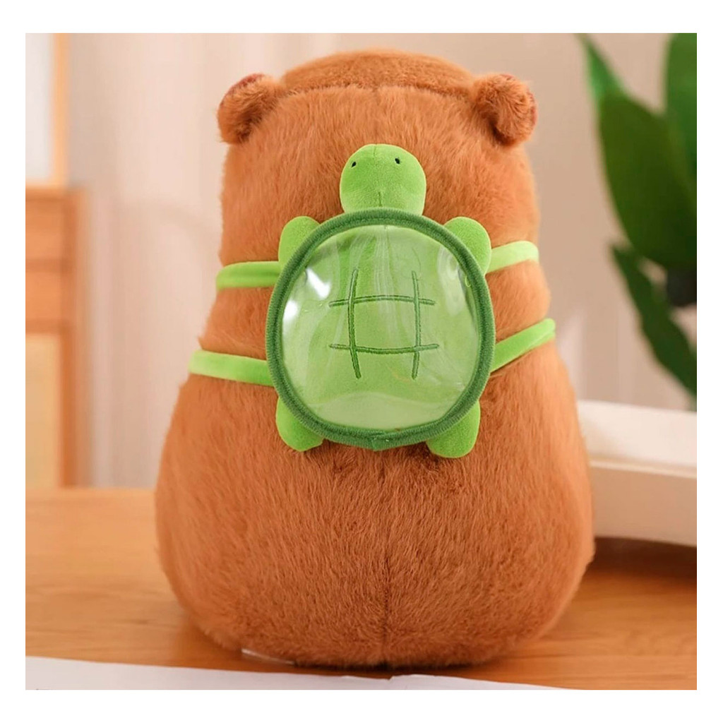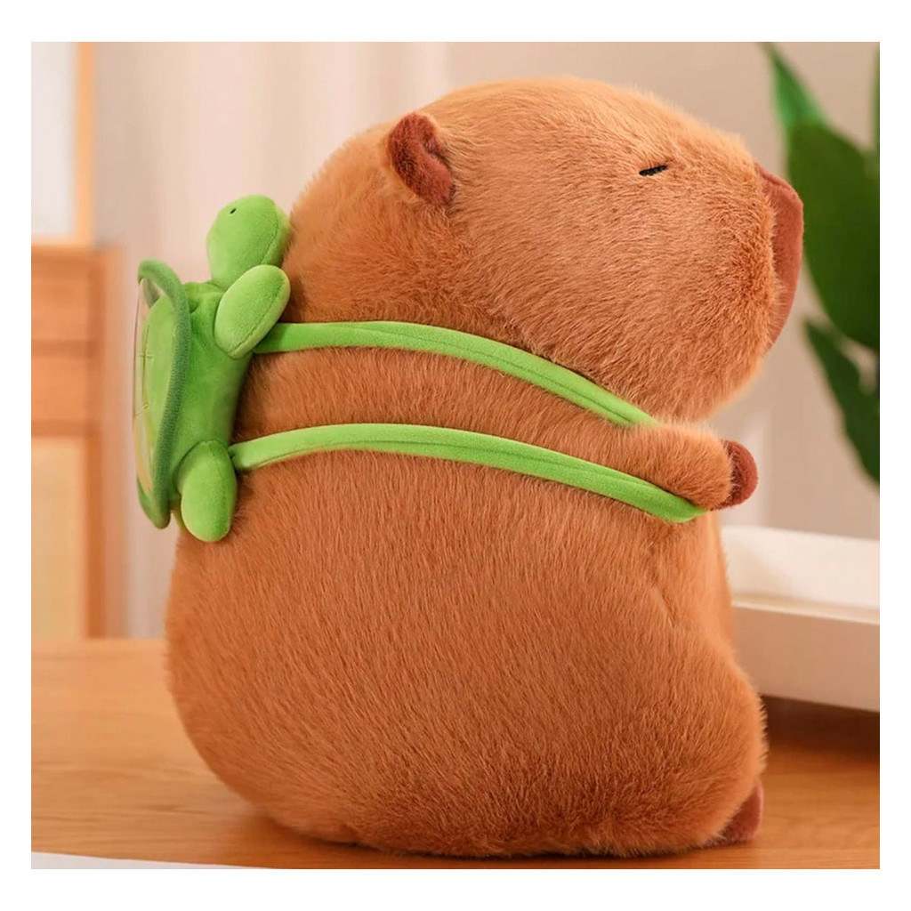 Capivara Filó Pelúcia Gigante Antialérgica com Mochila de Tartaruga 23 Cm