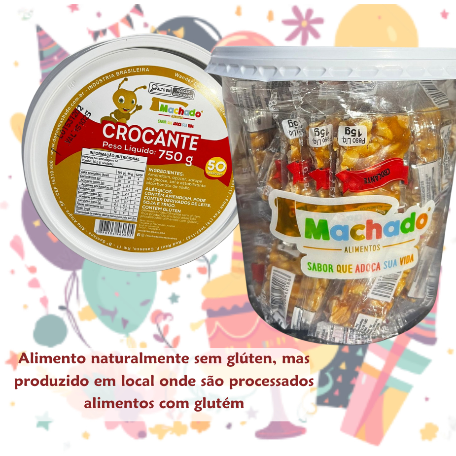 Pé de moleque crocante Machado 15g pote com 50 unidades