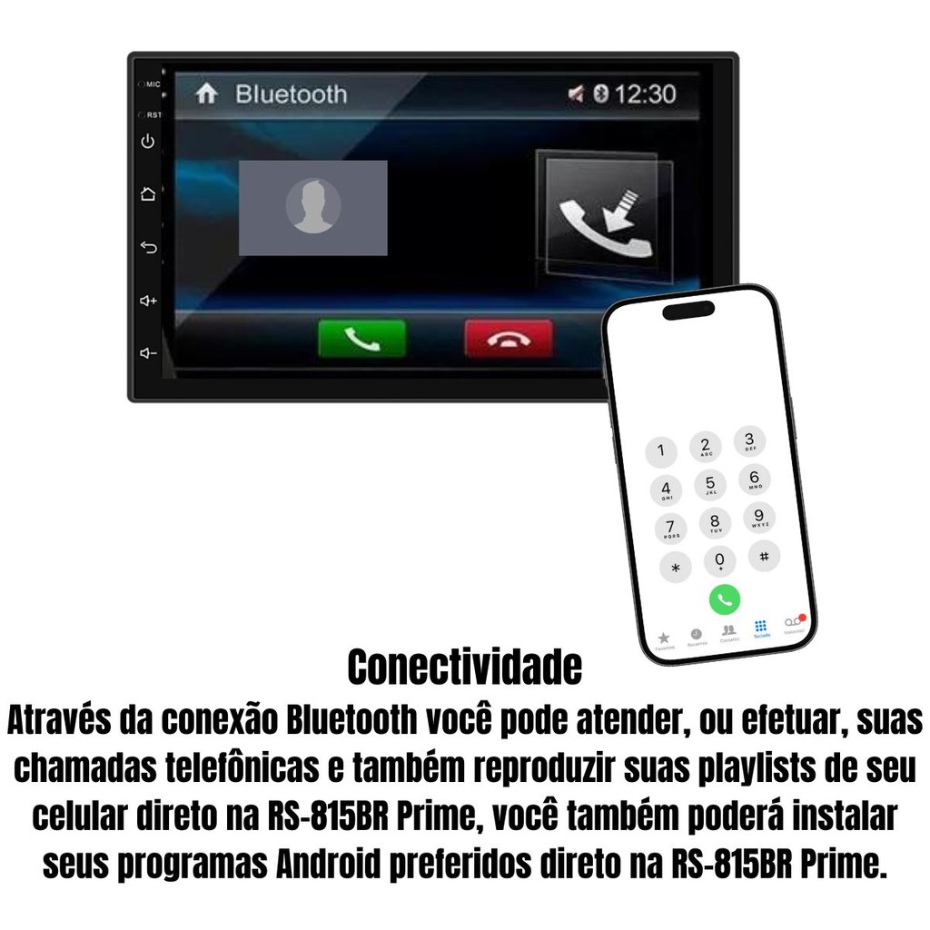 Central Multimídia Touch 7 Polegadas Android 12 Espelha Carplay Sem Fio Bluetooth USB RS-815BR PRIME