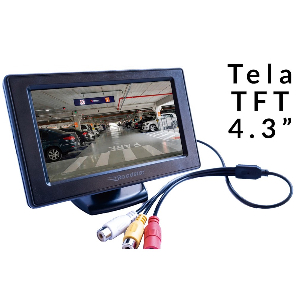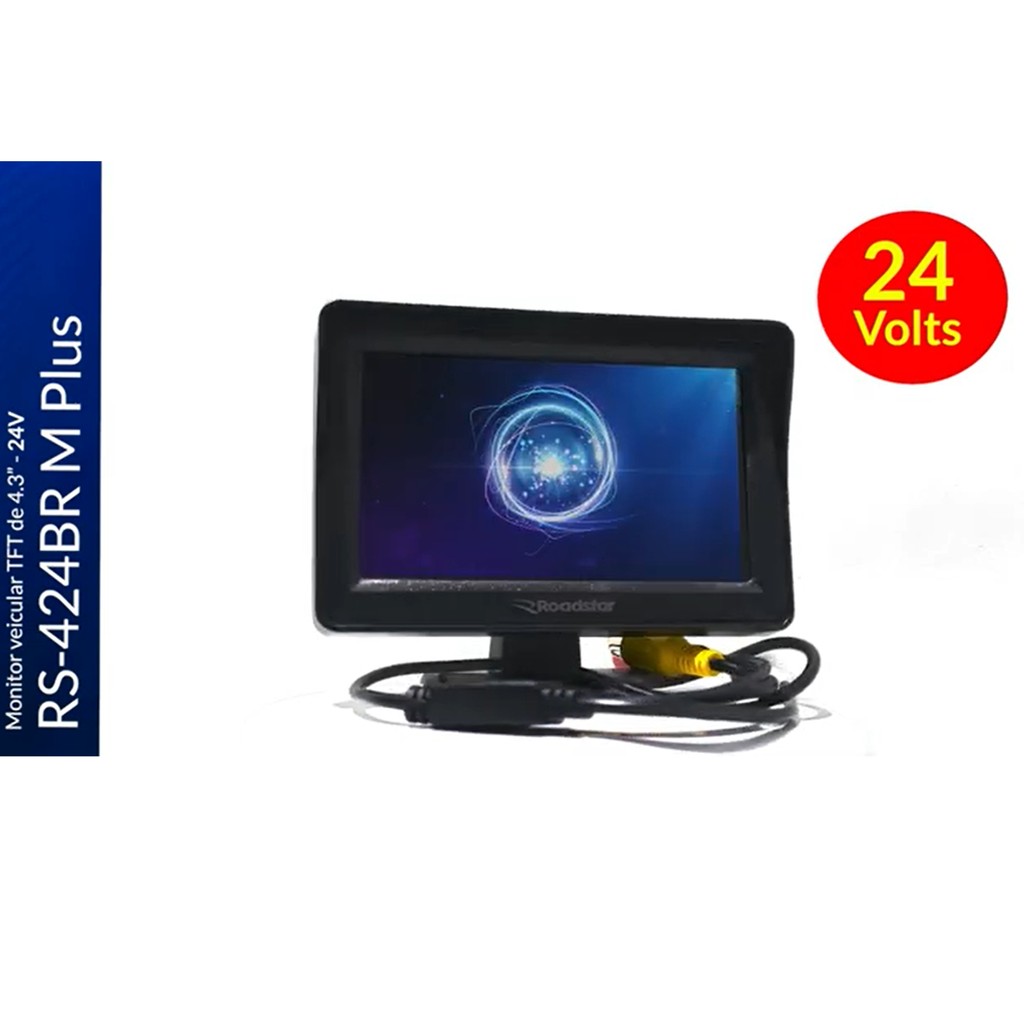 Monitor Tela 4 Polegadas 2 Entradas Vídeo 12v 24v Caminhão Ônibus Van Carro Roadstar RS-424BR PLUS