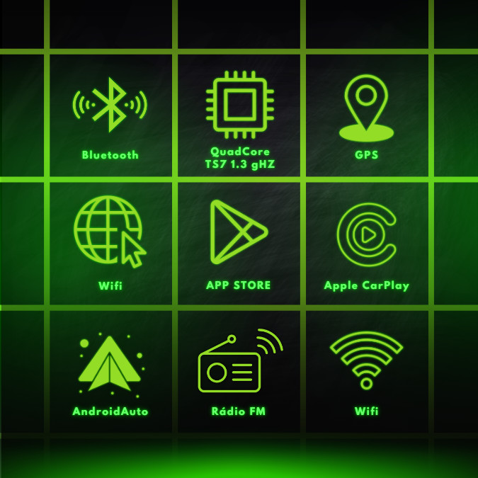 Central Multimídia Tela 9'' IPS LCD Full HD GPS WIFI Universal Android 14 2GB 32GB Carplay Bluetooth