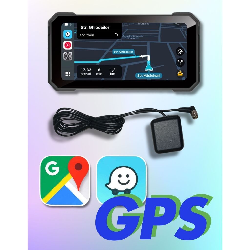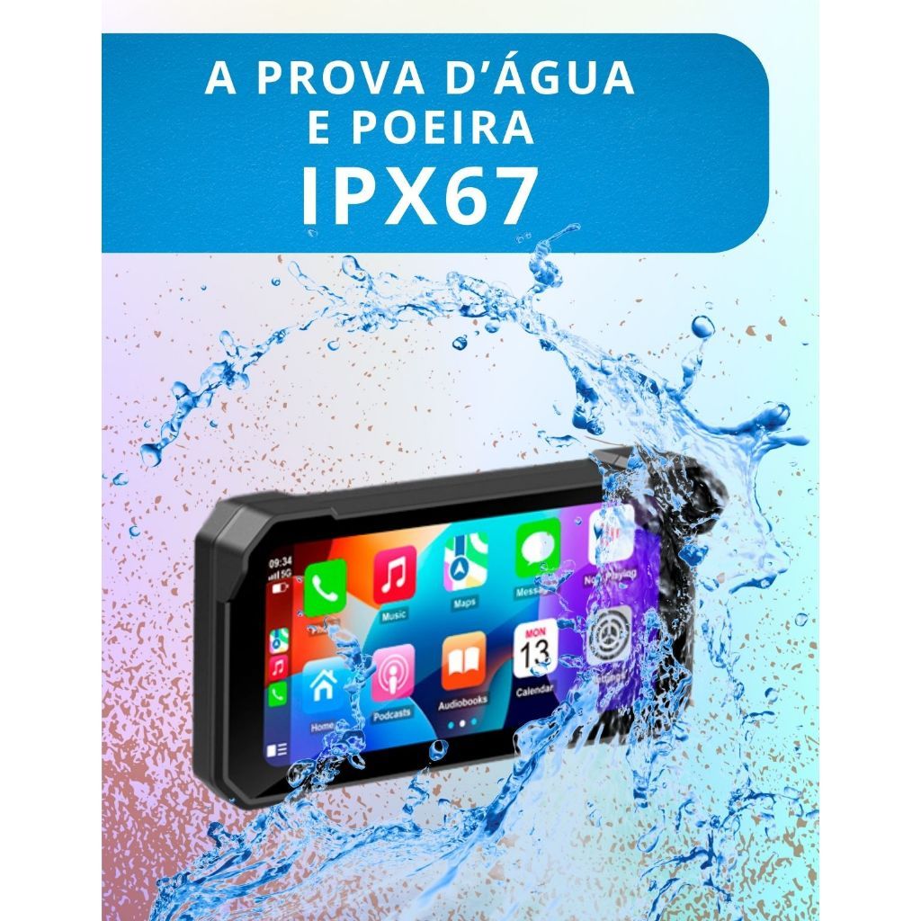 Tela 6,25 Polegadas para Moto Univesal 12v Carplay 2 Câmeras DVR AndroidAuto sem Fio Mapa Gravaçoes