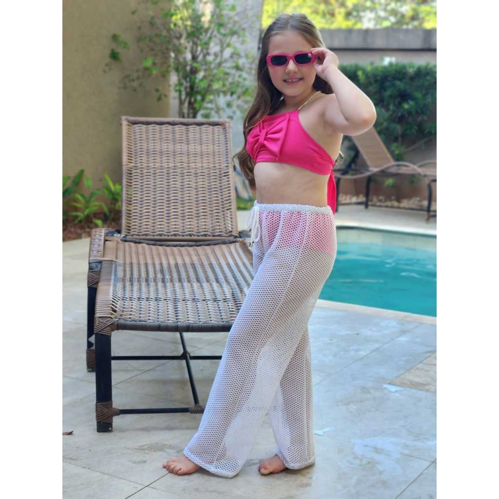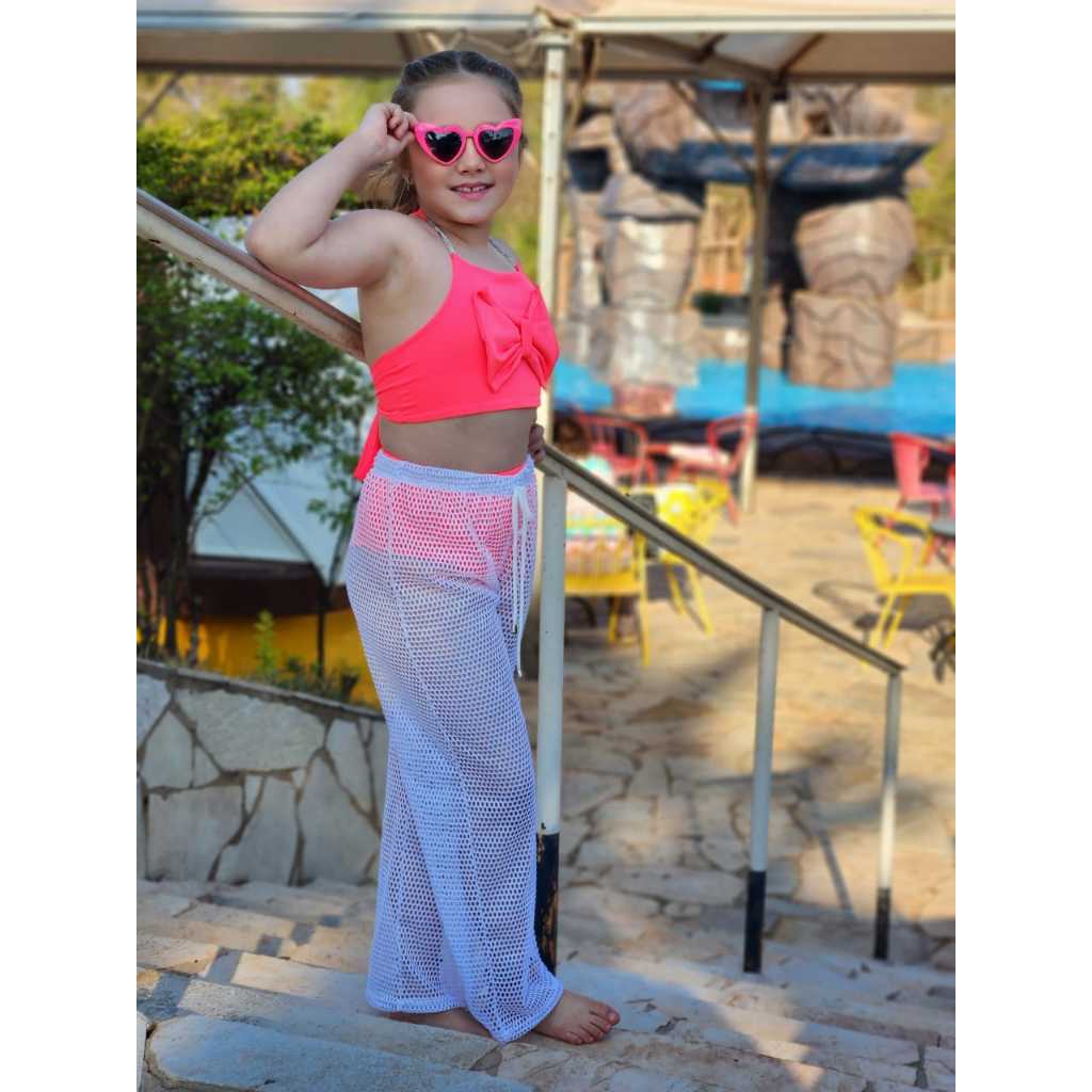Kit Praia Infantil Biquíni Laço de Strass + Calça Saída de Praia Arrastão