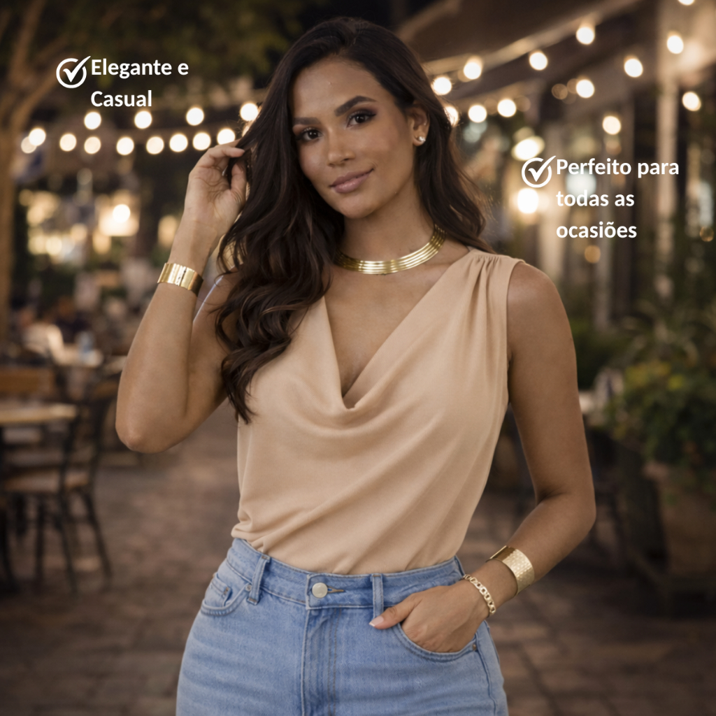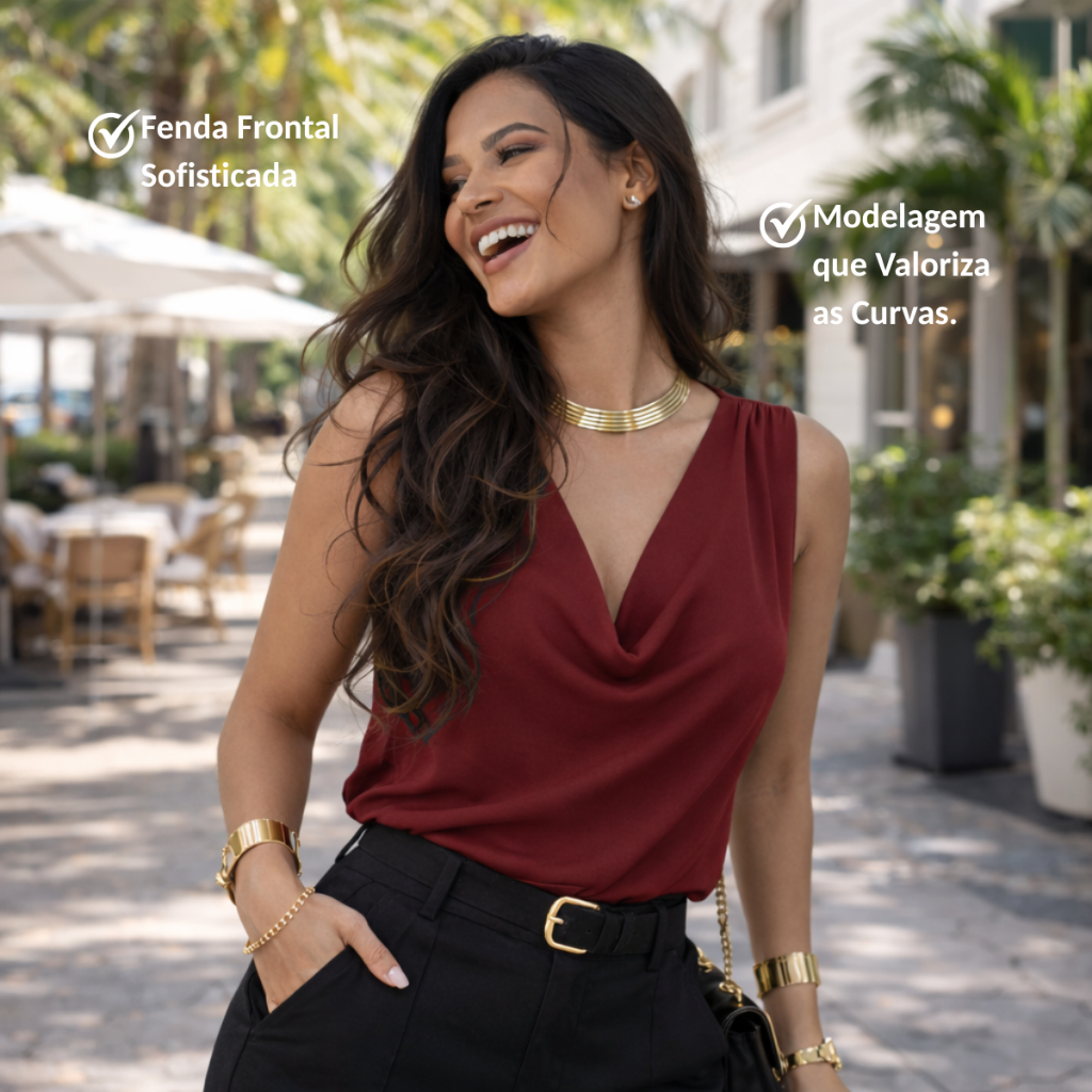 Kit 3 Blusa Regata Feminina Gola Boba Suplex Premium Drapeada Elegante Moda Verão