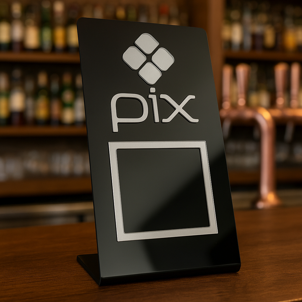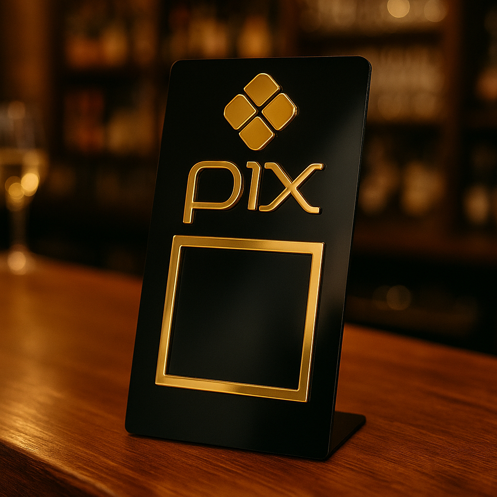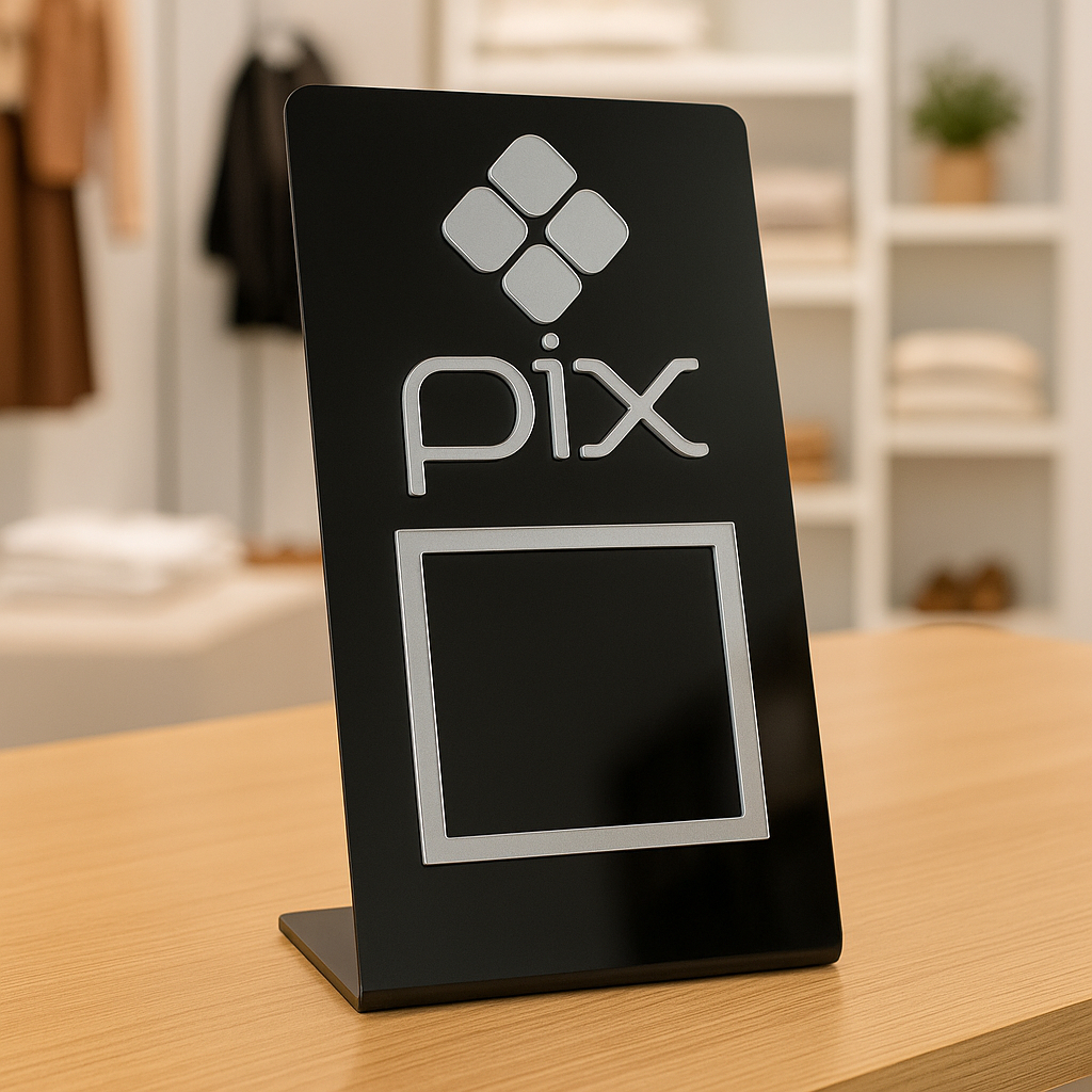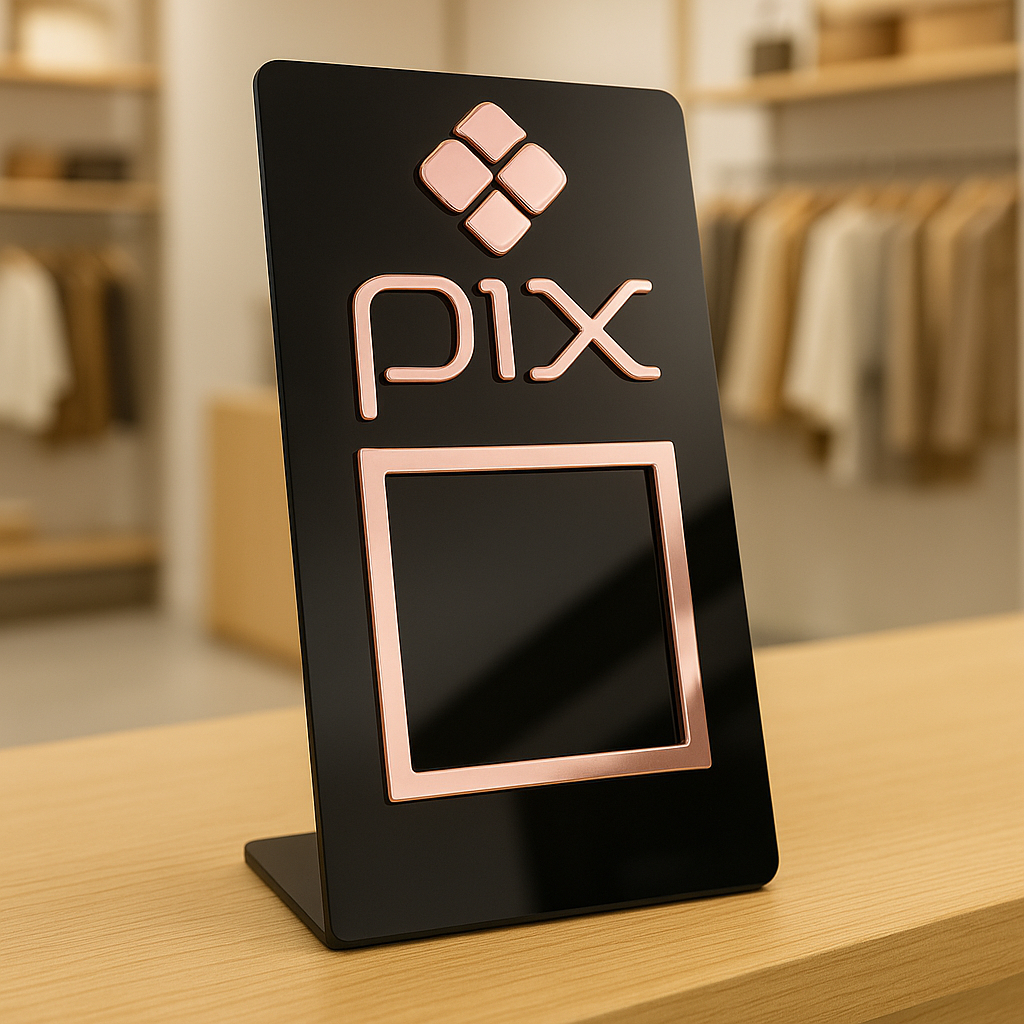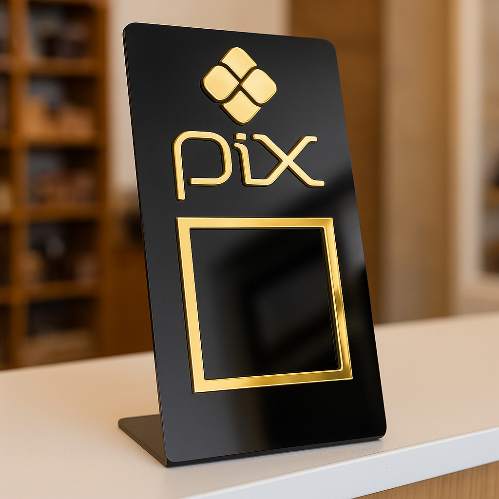 Placa Pix Personalizada em Acrílico Espelhado Elegância no Seu Balcão
