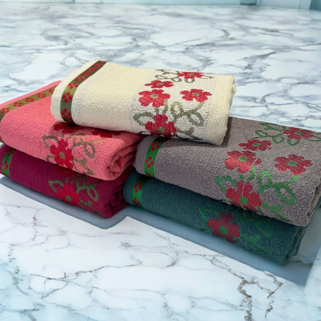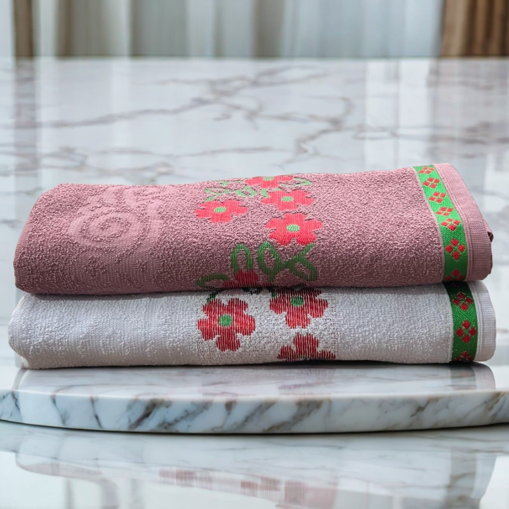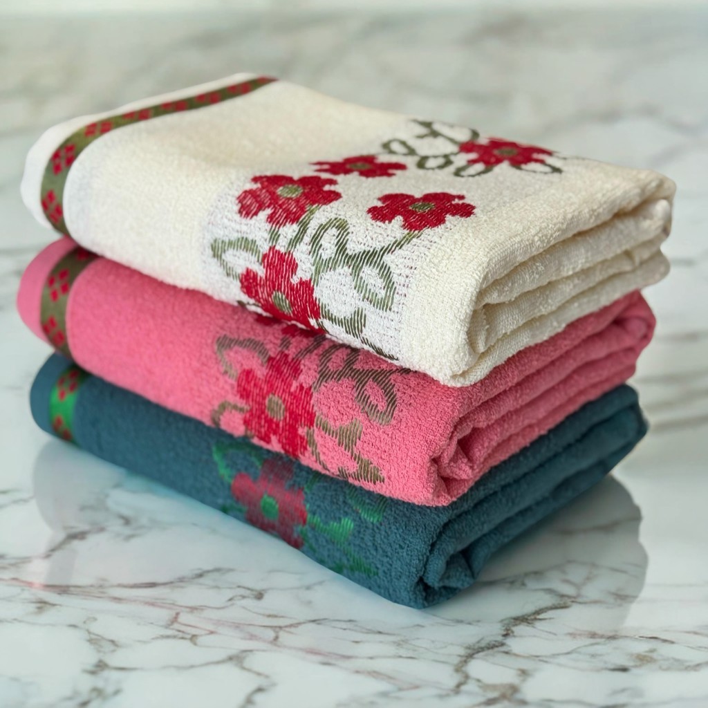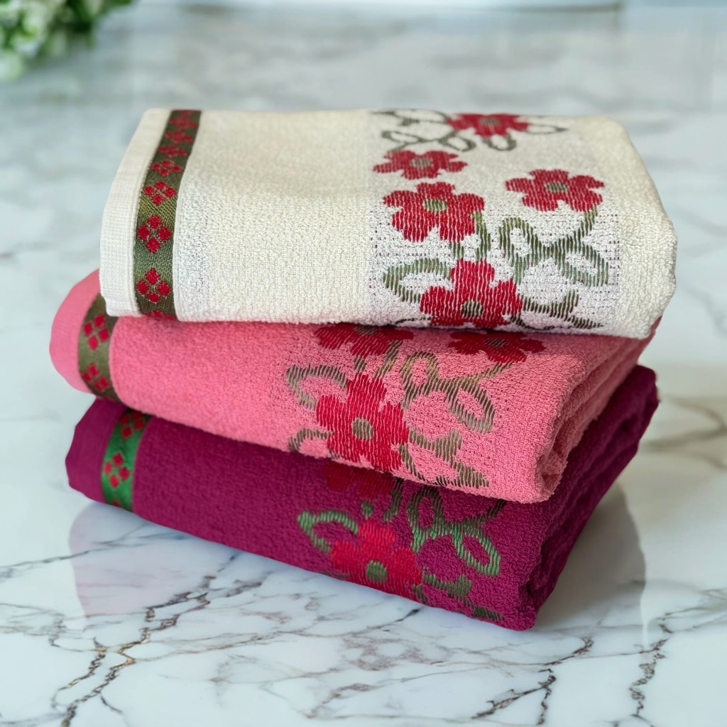 Kit 3 Toalhas de Banho Florata Jacquard Luxo 100% Algodão 140x75cm – Cores Sortidas