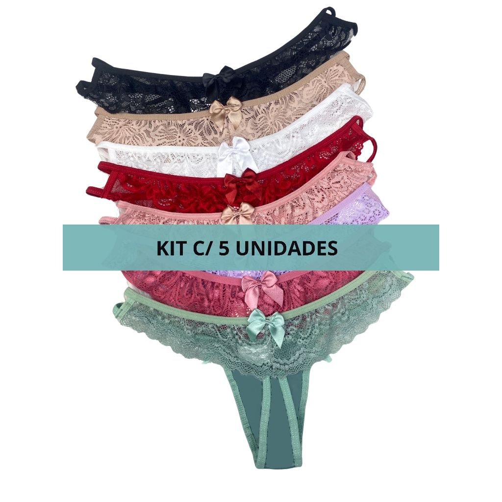 Kit 5 Calcinha Fio Dental Tanga Sensual Renda Premium Sexy
