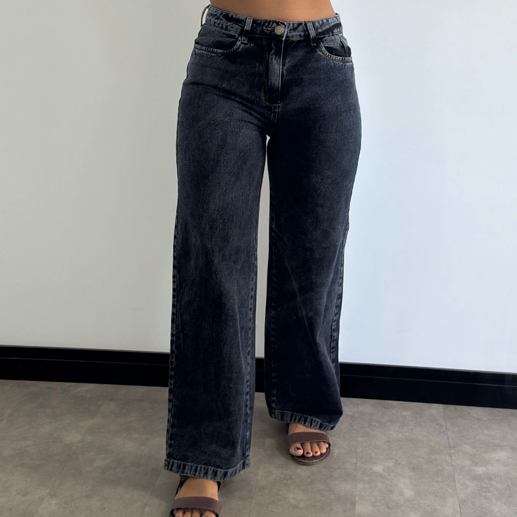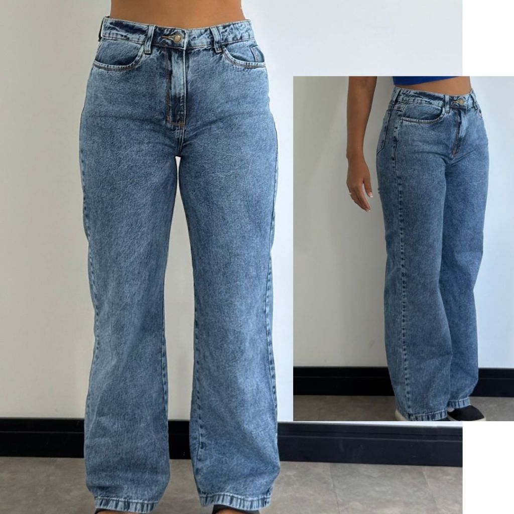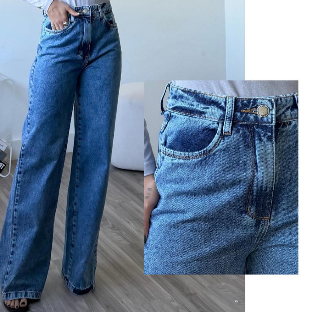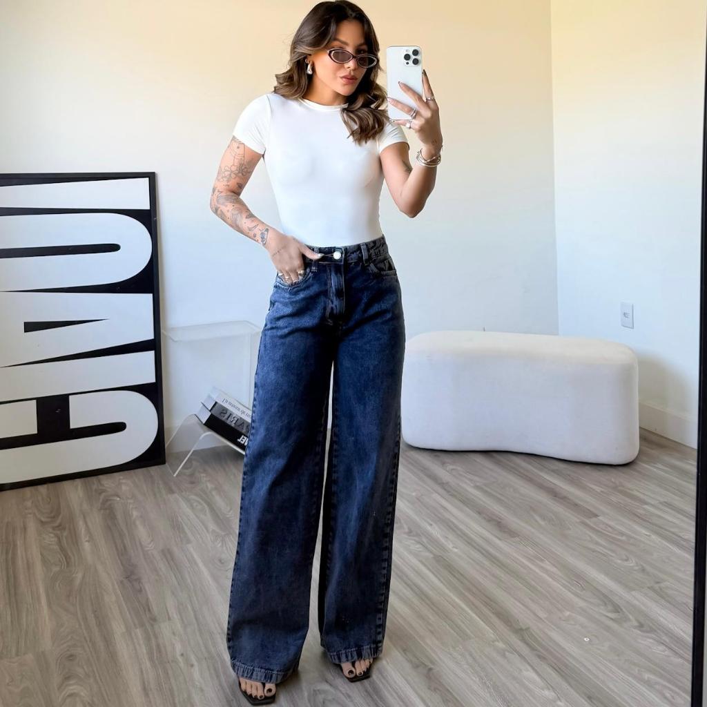 Calça Jeans Feminina Wide Leg pantalona Cintura Alta Tecido calça wide leg jeans