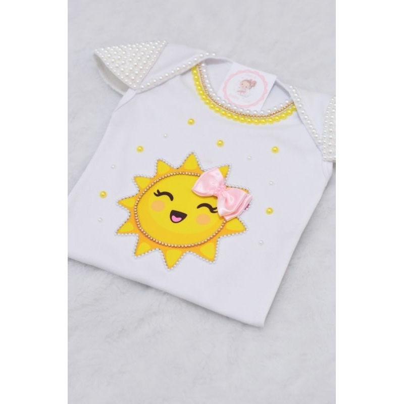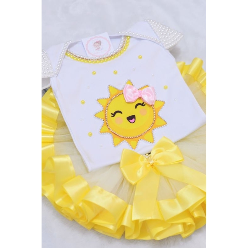 Kit Bebê Menina Luxo – Body + Saia de Tule Sol Festa Infantil fantasia aniversário
