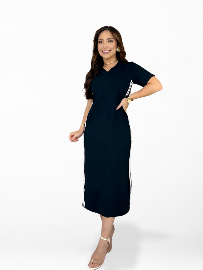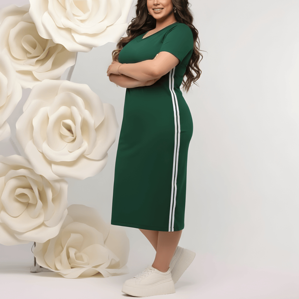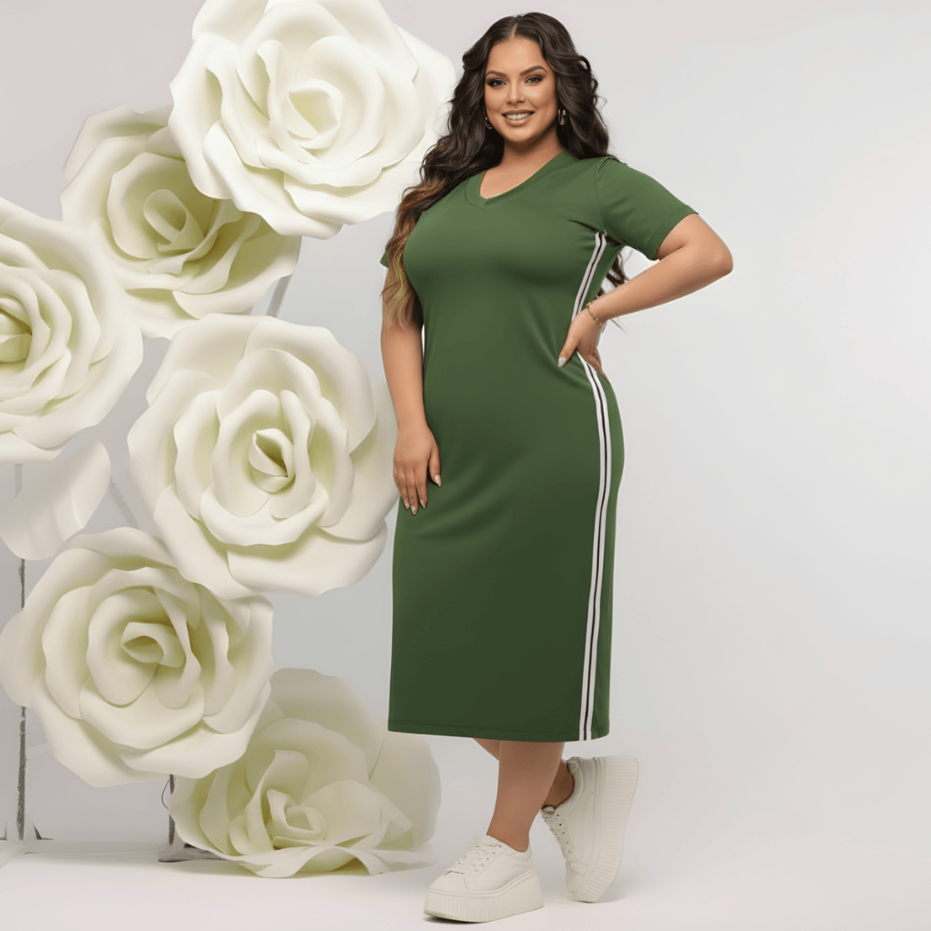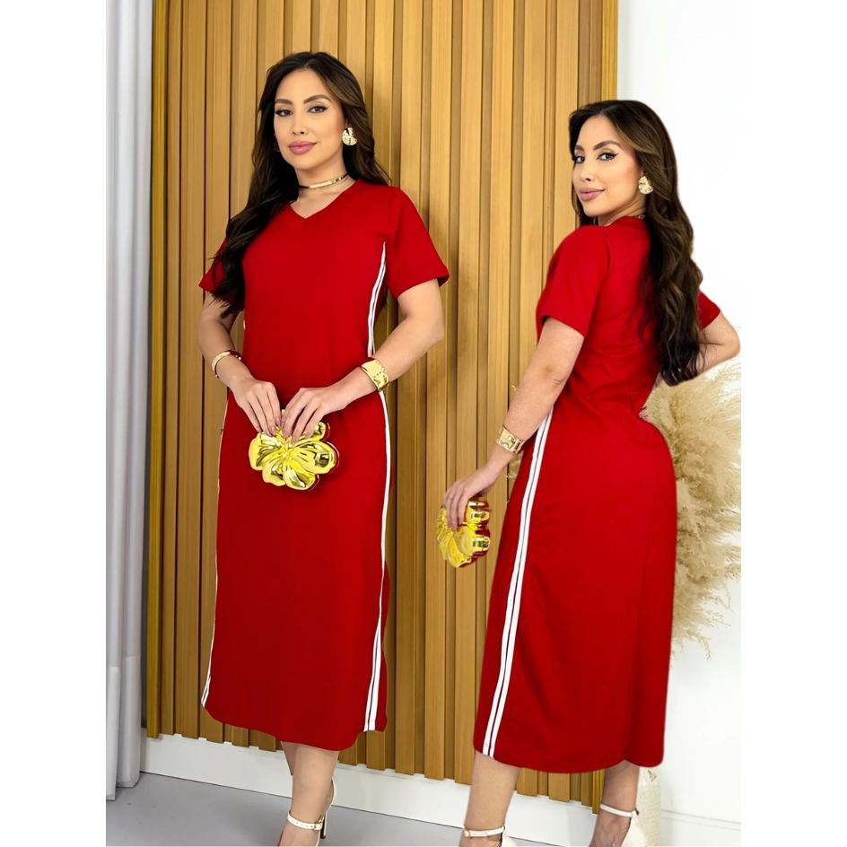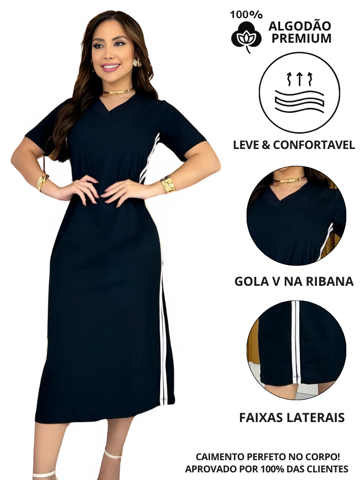 Vestido Feminino Midi com Faixa Laterais Track - Malha 100% Algodão Premium Moda Casual, Evangélica