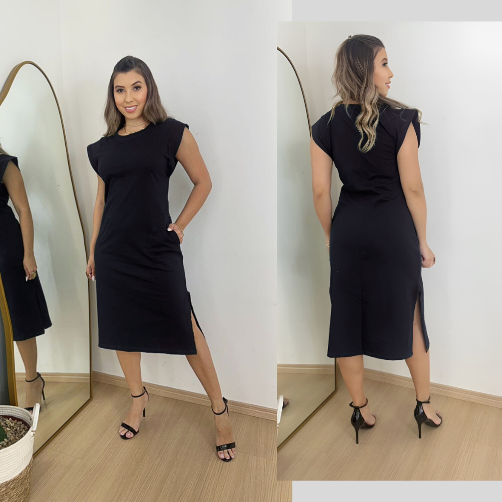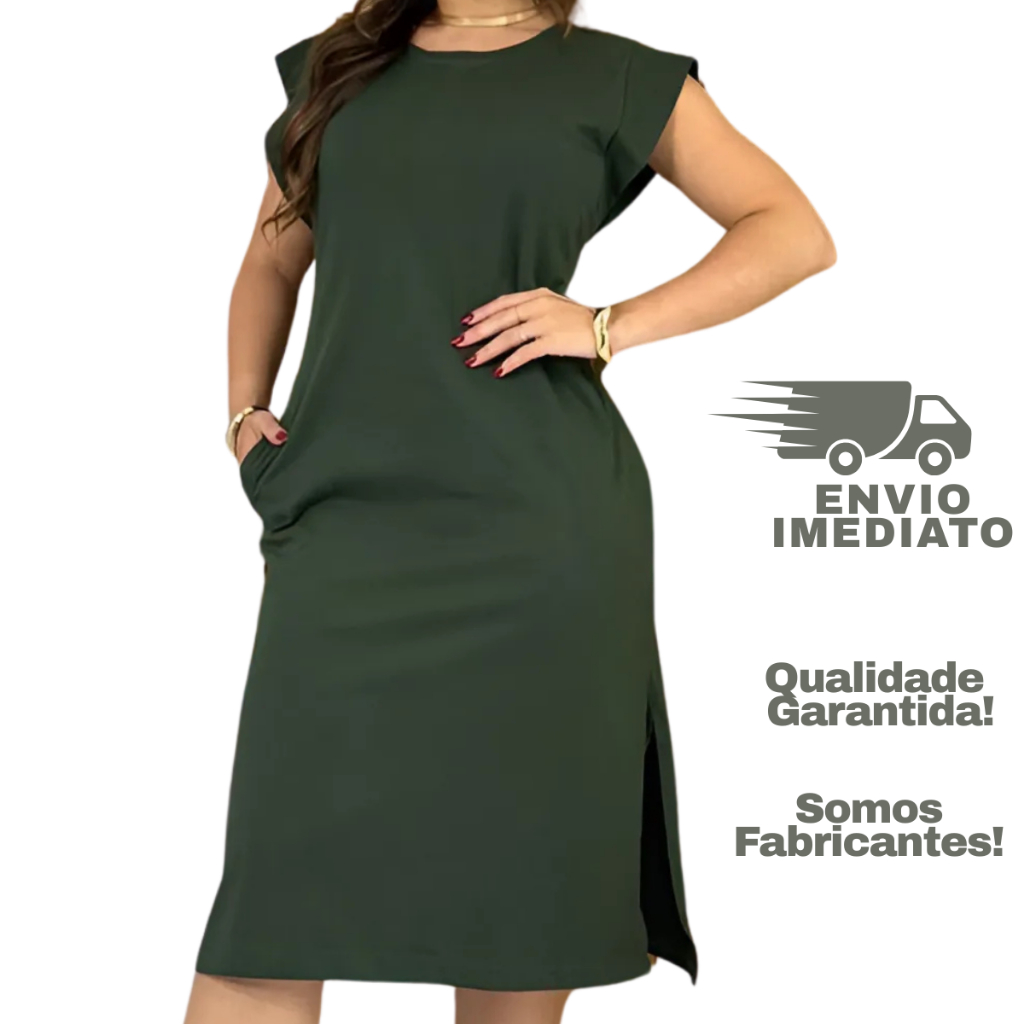 Vestido Midi Feminino Muscle Tee Algodão com Bolso Casual Básico Confortável Verao Vestido Soltinho Manga Japonesa