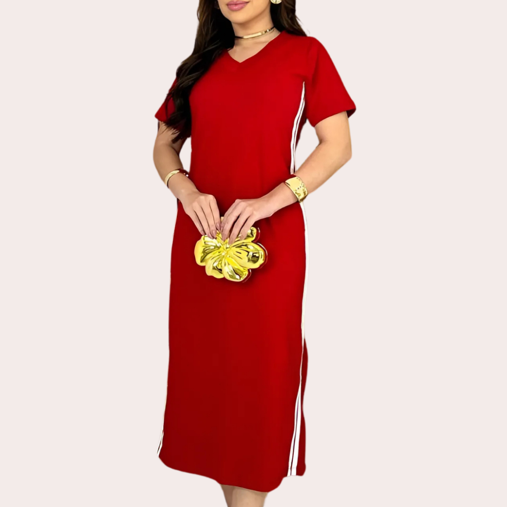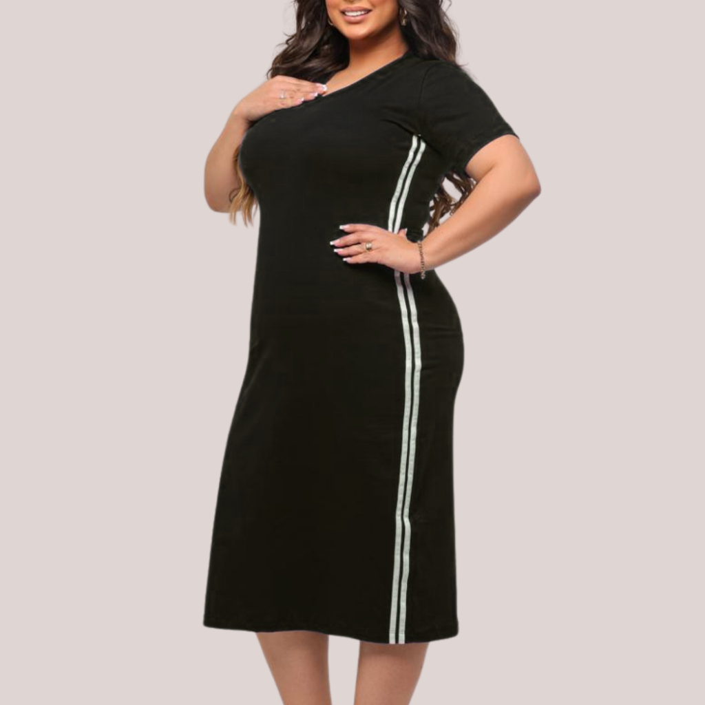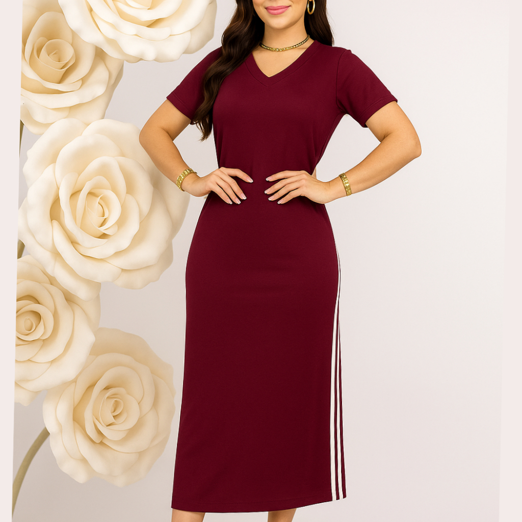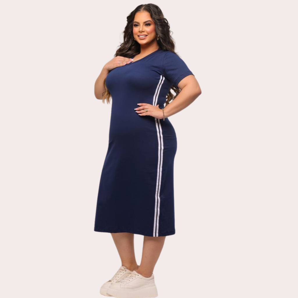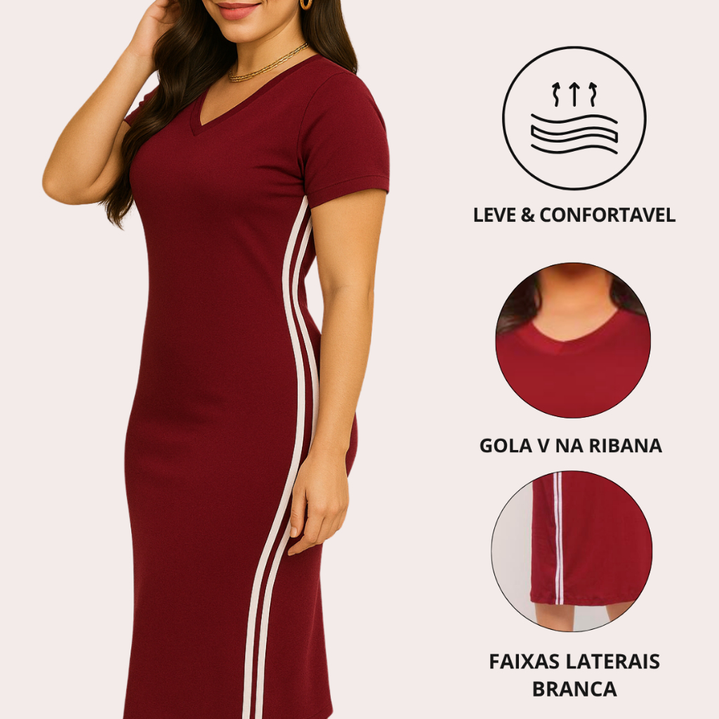 Vestido Com Faixa Branca Laterais Vestido Midi elegante moda modesta - Vitoriana Moda