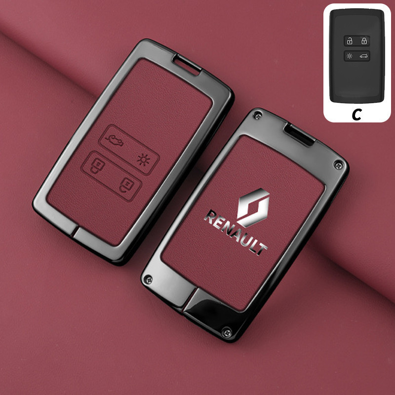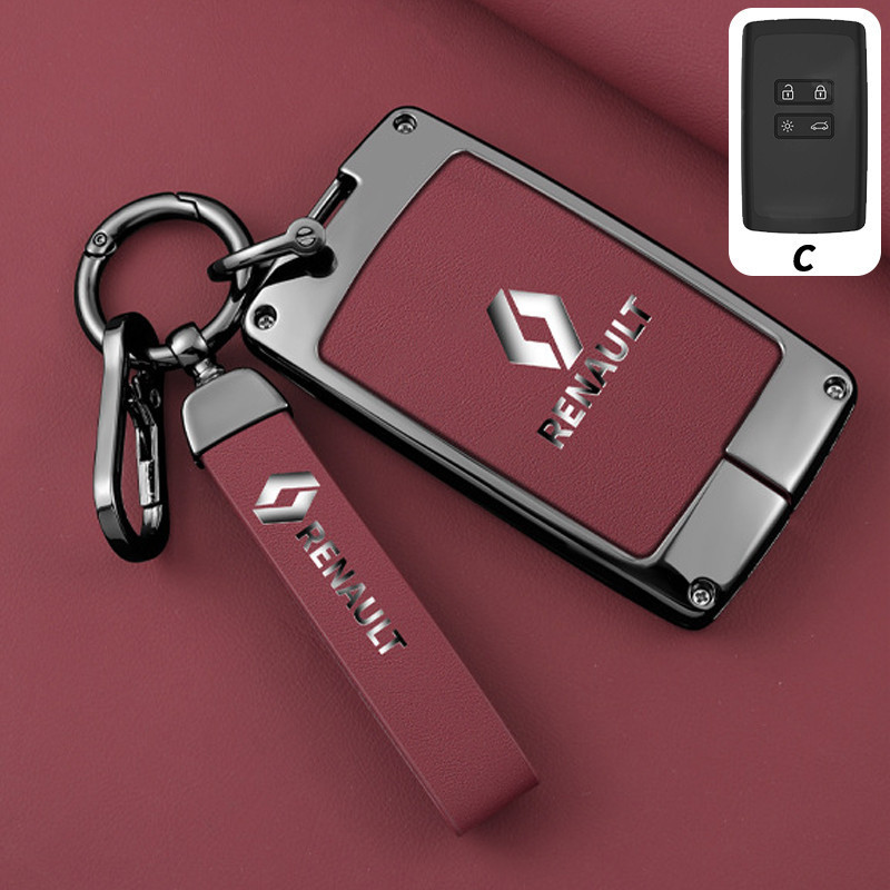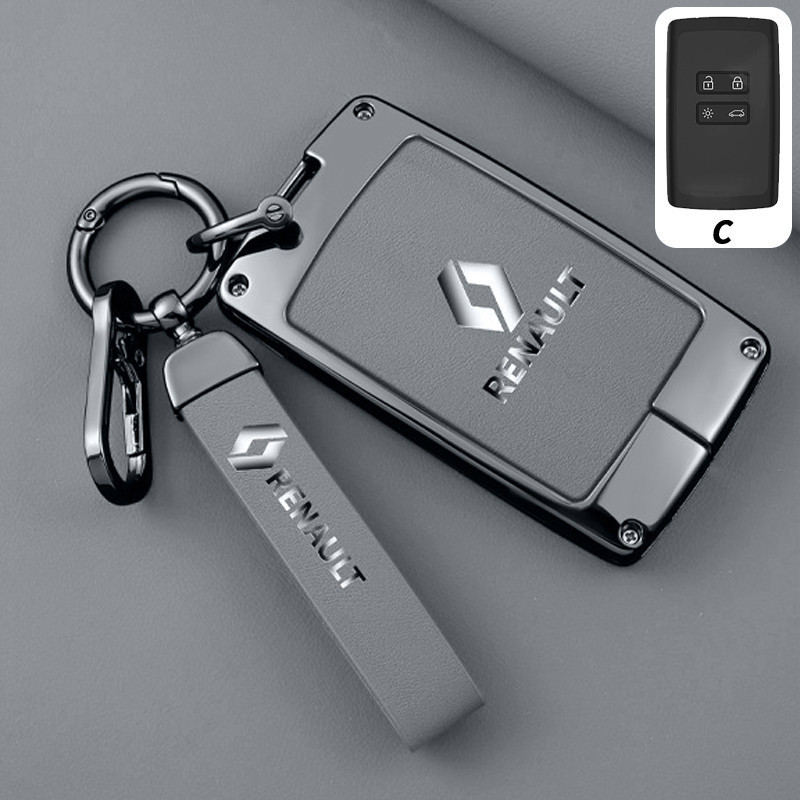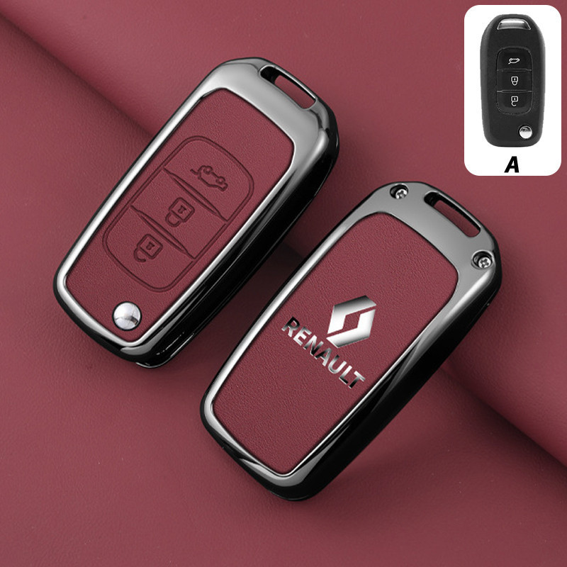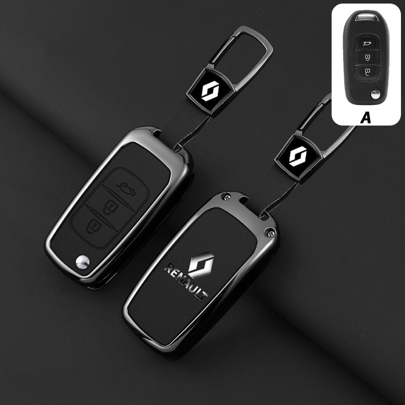 Capa de Chave Renault em Liga de Zinco e Couro, Protetor Completo para Kwid Duster Kardian Megane 2 Sandero 7504