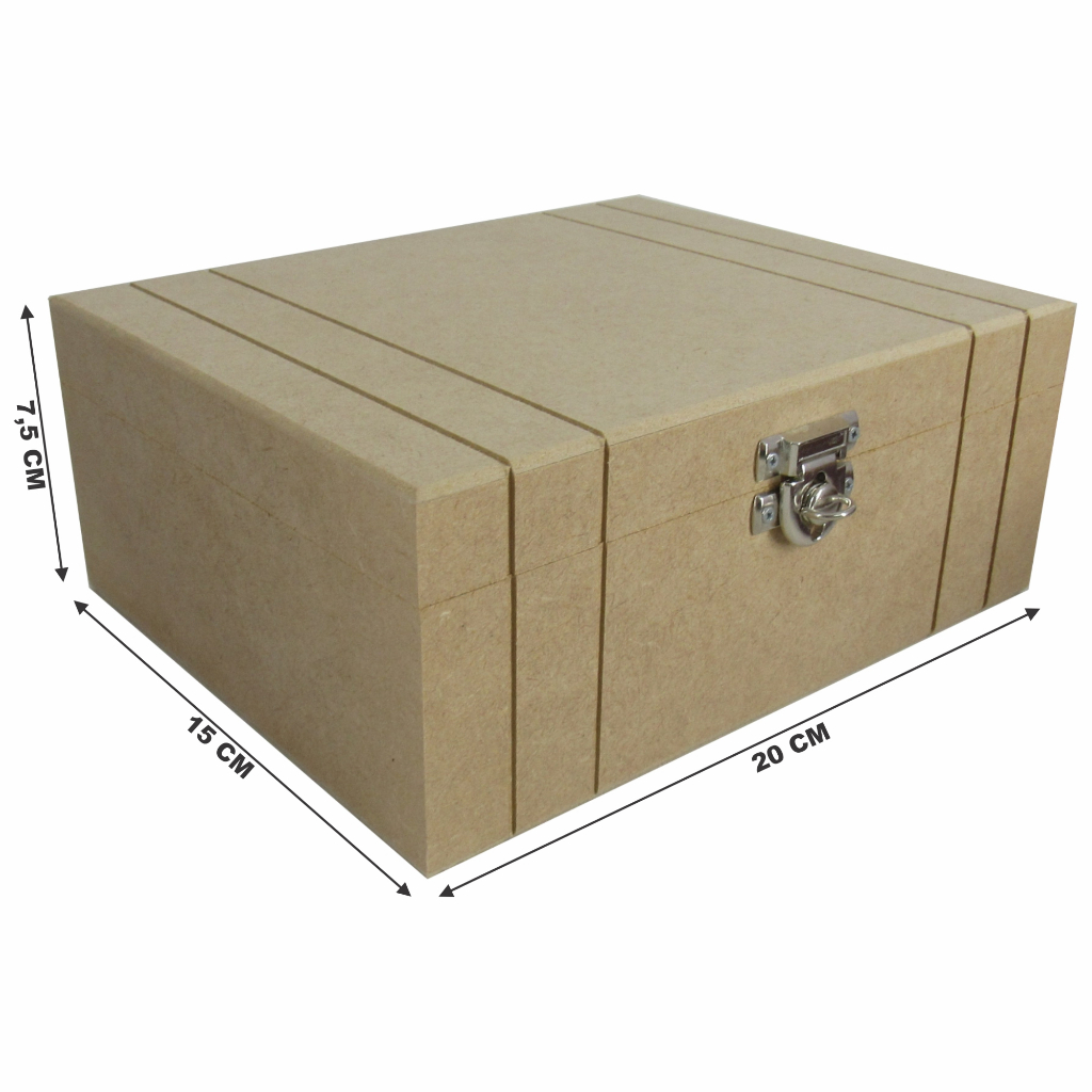 Trio de Frasqueira Baú baixa Organizador em MDF com Fecho e Dobradiça de Metal para Decoração