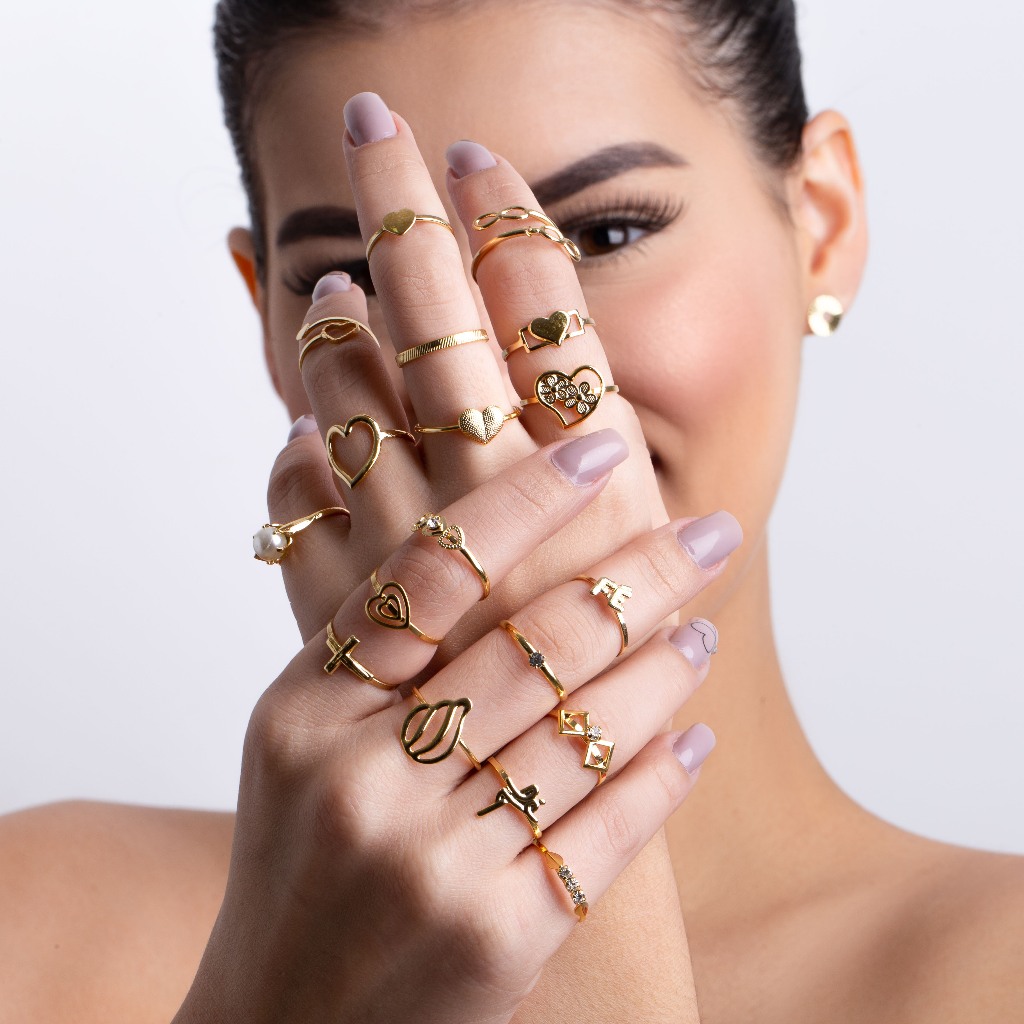 Kit 10 Peças Misto A OURO 18k E PRATA 925 Folheada Semi Joia Feminino Presente Promoção Banhado