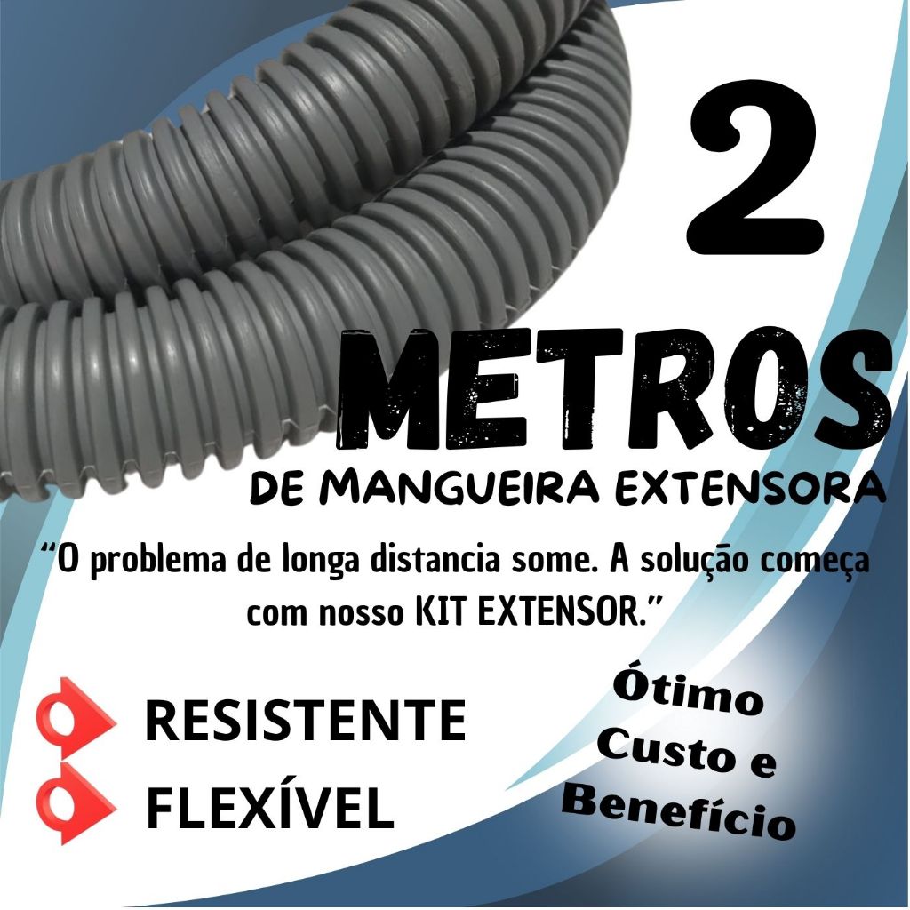 Kit Emenda extensor mais 2 metros de mangueira sanfonada e suporte curvo para maquina de lavar roupa lava louças