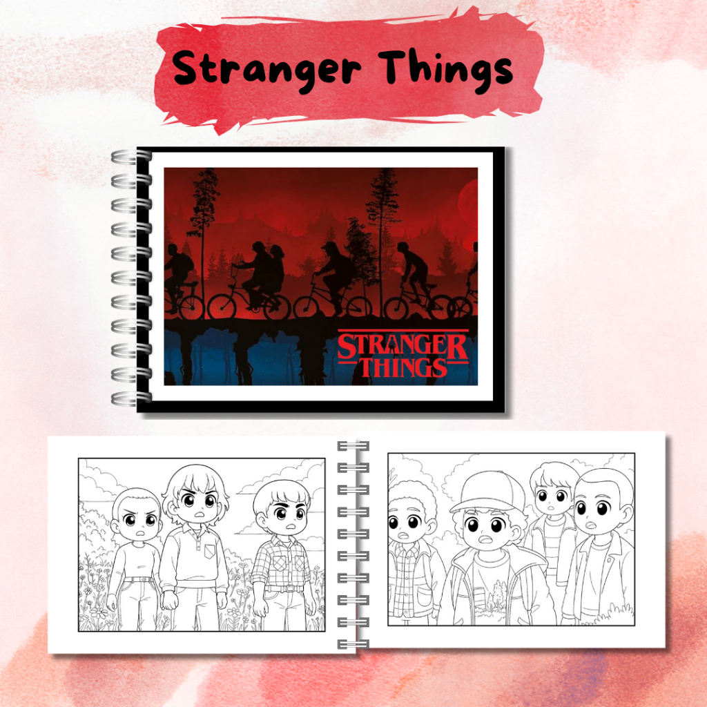 Livro de Colorir Inspirado em Stranger Things A5 Capa Dura 180g Acompanha Acetato