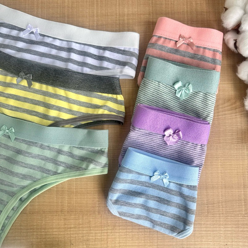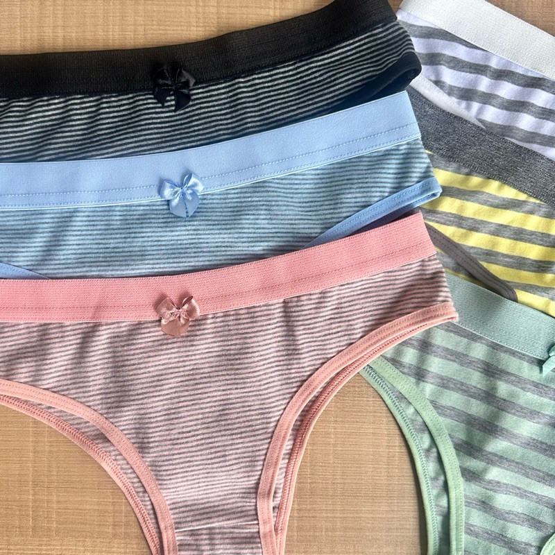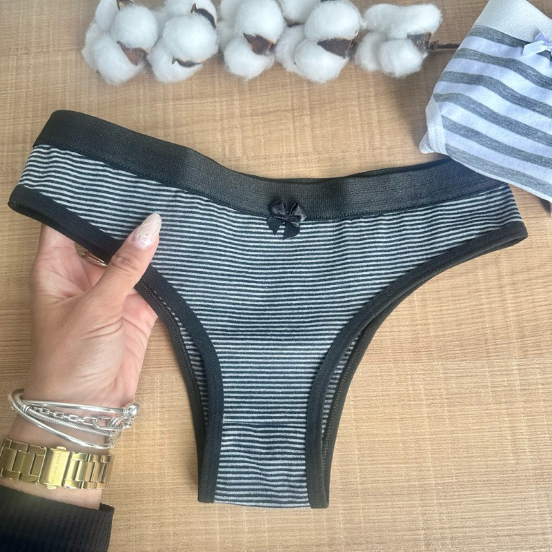 Kit 5 - Calcinha Algodão Listrada Conforto Feminina