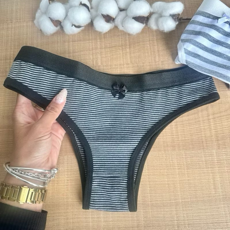 ***PROMOÇÃO*** Kit 3 - Calcinha Algodão Listrada Feminina
