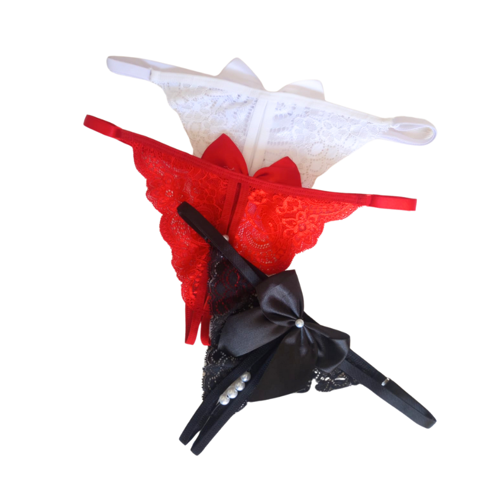 Kit 5 Calcinhas Com Pérola Marido Apressado Renda e Laço