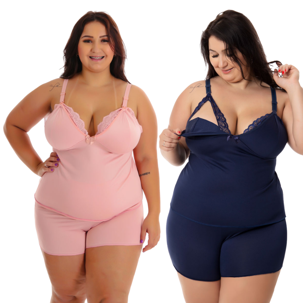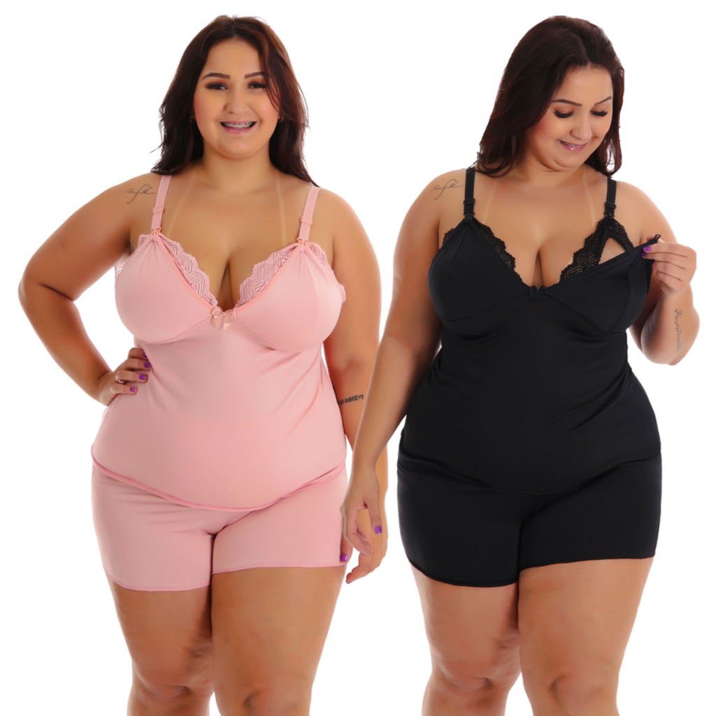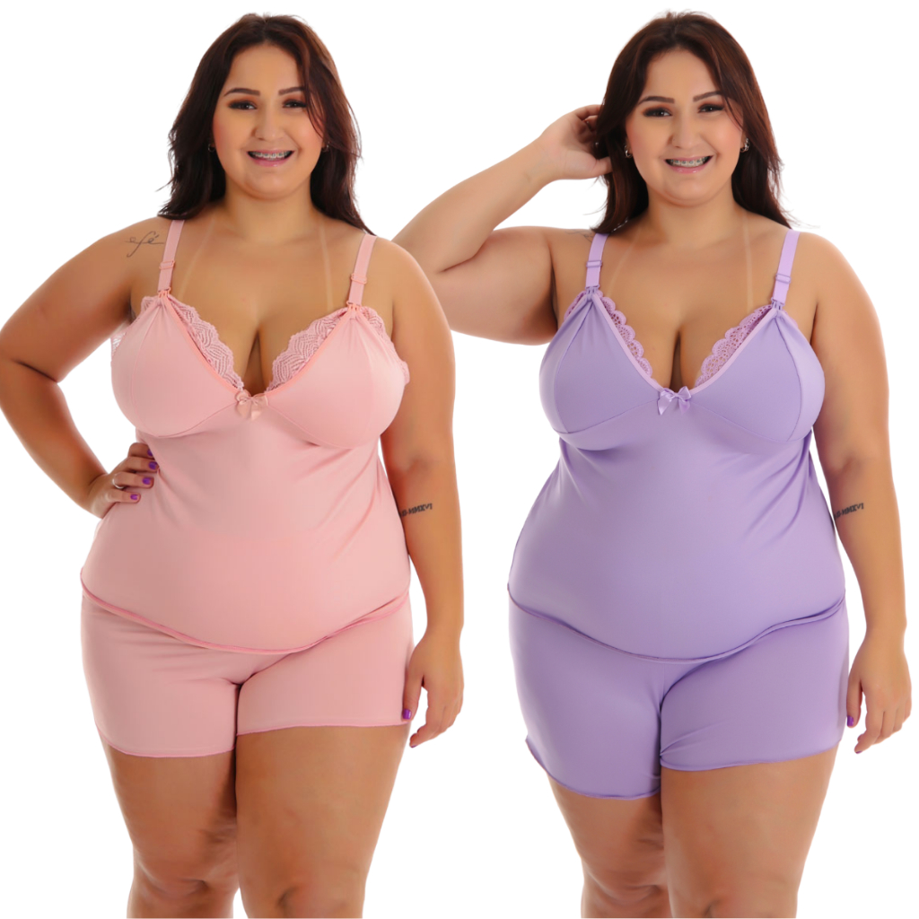 Kit 2 Baby Doll Amamentação Plus Size Pós Parto Gestante Grávida
