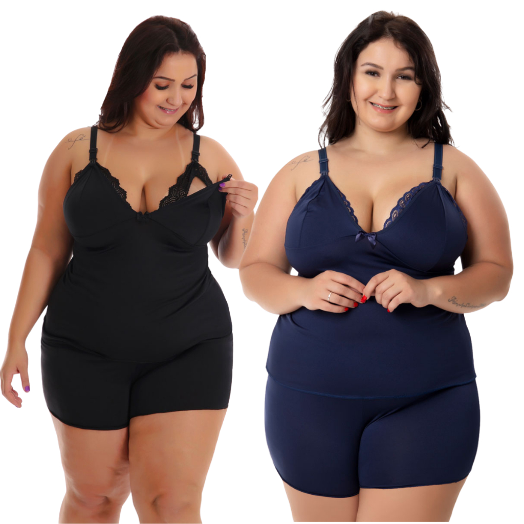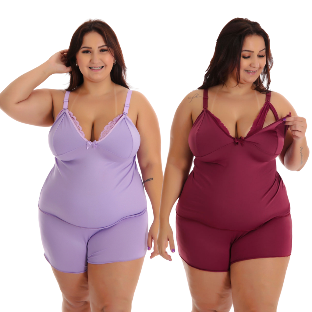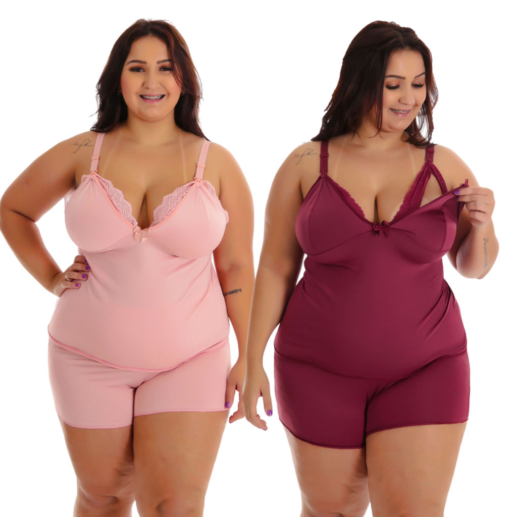 Kit 2 Baby Doll Amamentação Plus Size Pós Parto Gestante Grávida