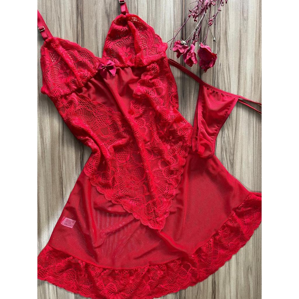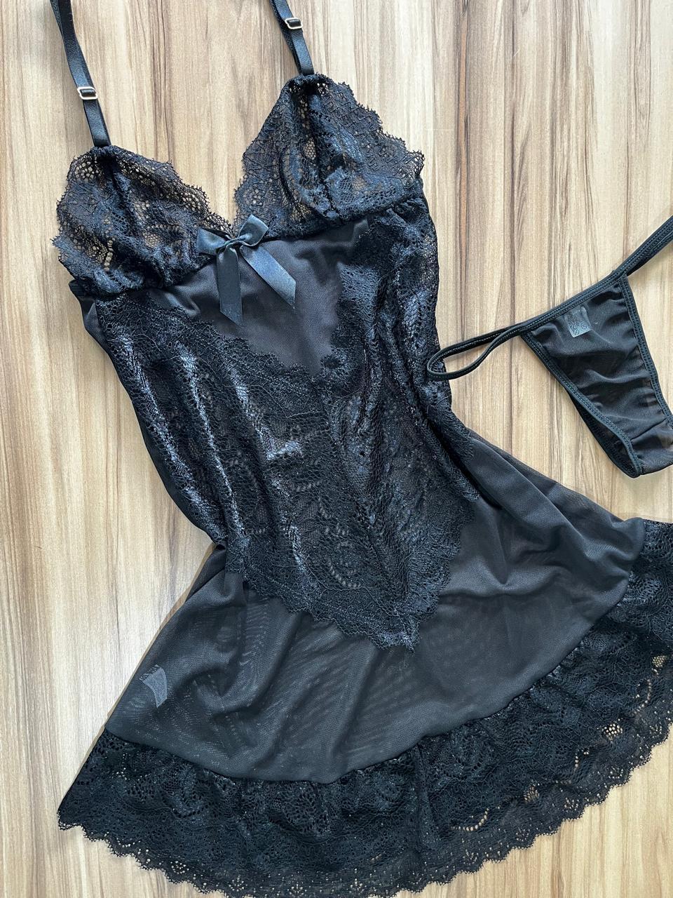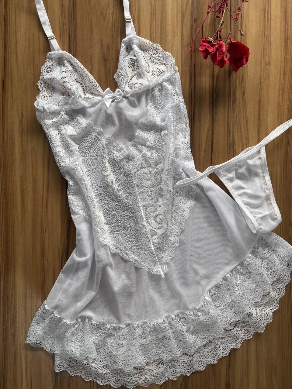 Camisola Tule Acompanha Calcinha Transparente Com Detalhe Renda