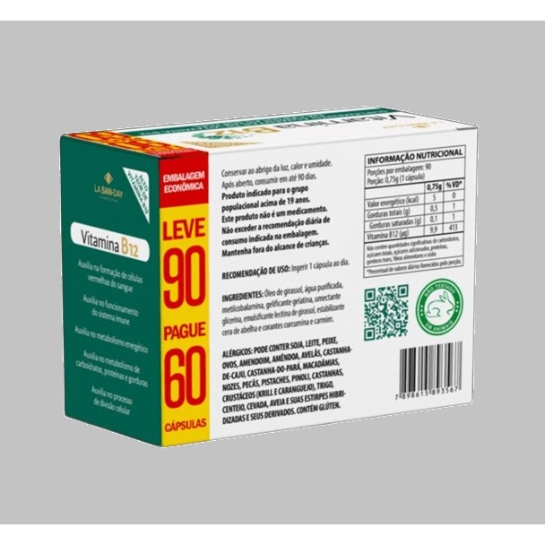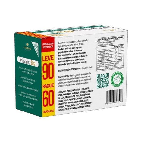 Kit Com 2 Vitamina B12 Com 90 Caps Softgel - La San-Day