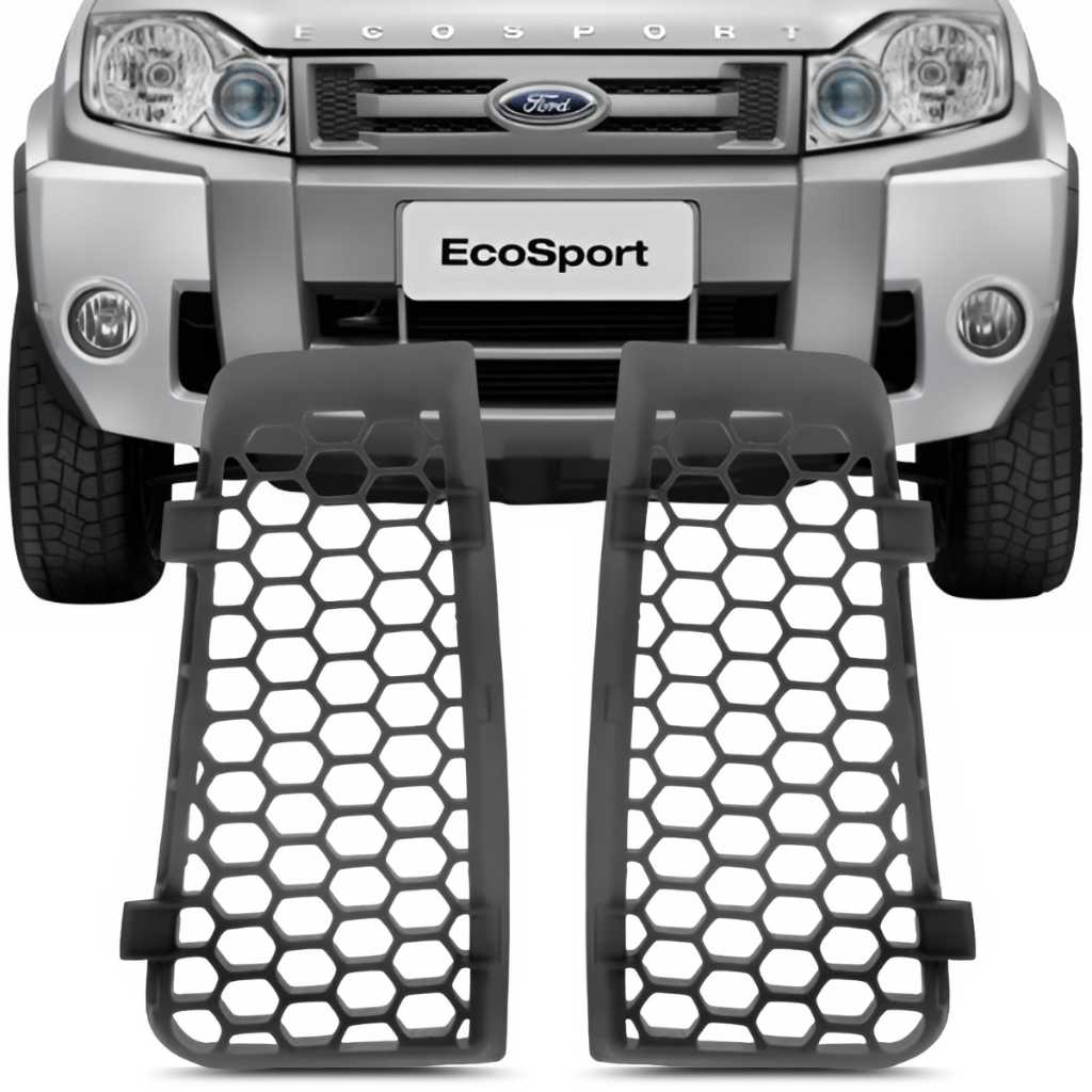 Par Moldura Grade Parachoque Ford Ecosport 2008 2009 2010 2011 2012 Preto Acabamento Tela Aplique