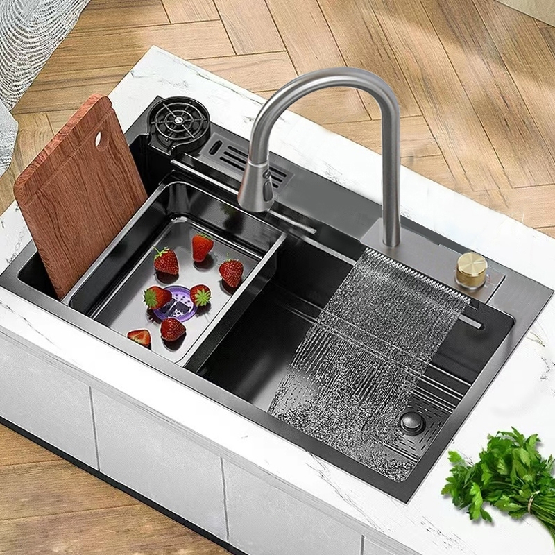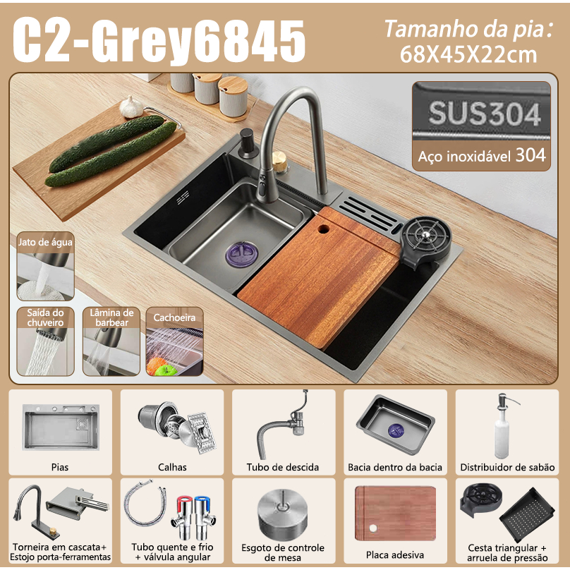 Kit Cuba Dupla Gourmet Aço Inox com acessórios75x45cm Mostra a temperatura da água+ Torneira Gourmet Monocomando