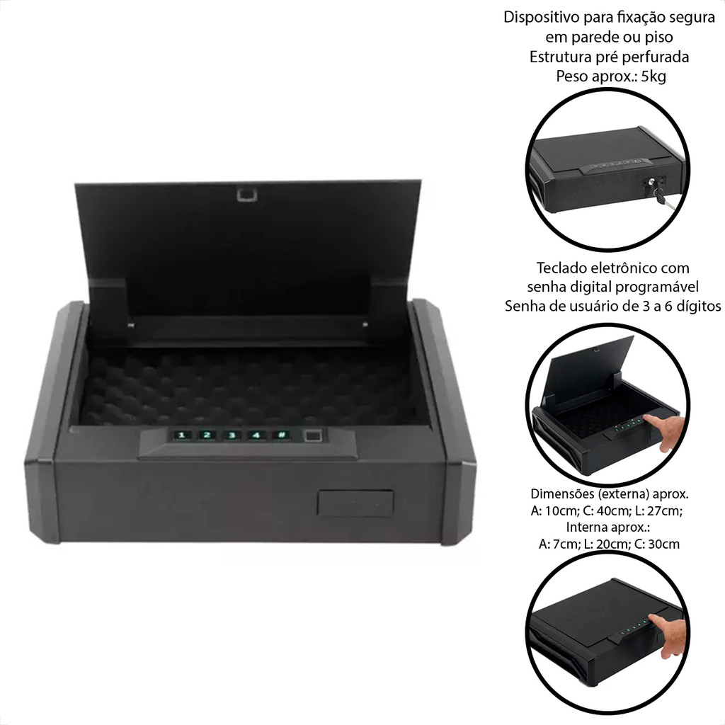 Cofre Digital Eletrônico Leitor Biométrico Para Armas Curtas Proteção Armamento Pronta Entrega