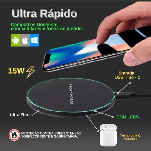 Carregador Por Indução Celular Samsung inducao Iphone15 Premium leve Portatil Pratico Elegante.